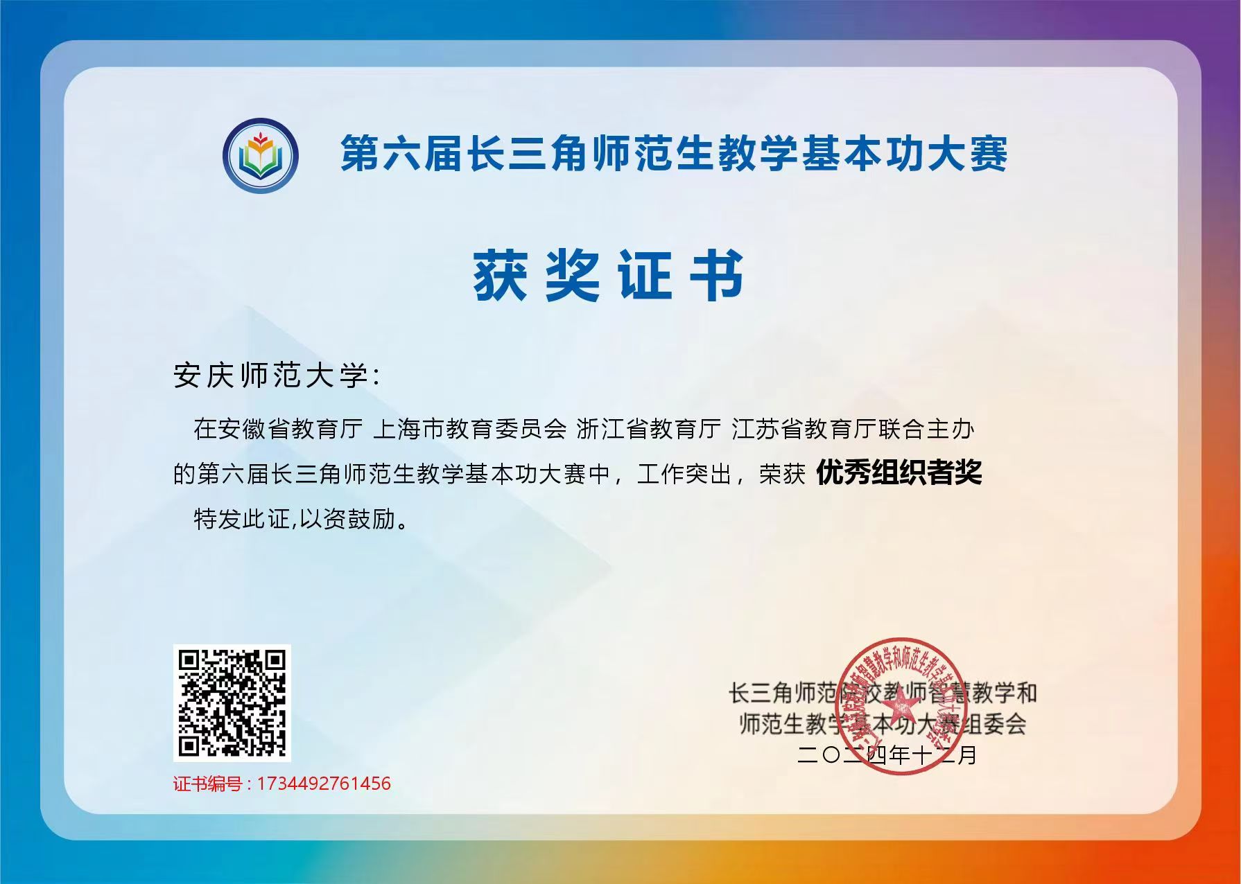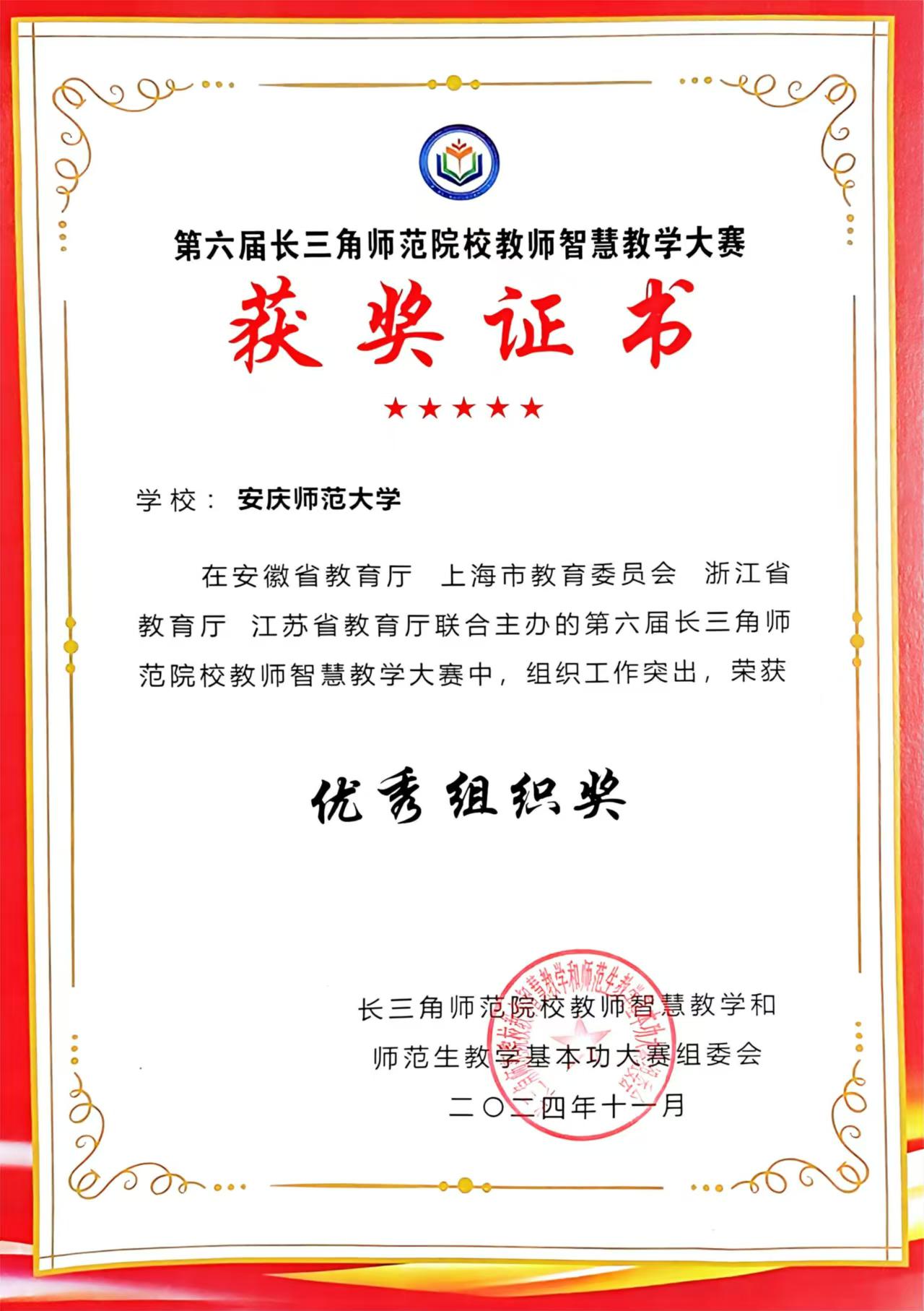 11月17日,第六届长三角师范院校教师智慧教学大赛、师范生教学基本功大赛在安徽师范大学落幕。在教师智慧教学大赛中,beat365官网体育学院教师唐芳、曹益嘉获二等奖;在师范生教学基本功大赛中,资源环境学院沈雯、外国语学院王念获二等奖,数理学院王宇、化学化工学院宋紫怡、人文学院钱维佳获三等奖,学校荣获“优秀组织奖”。