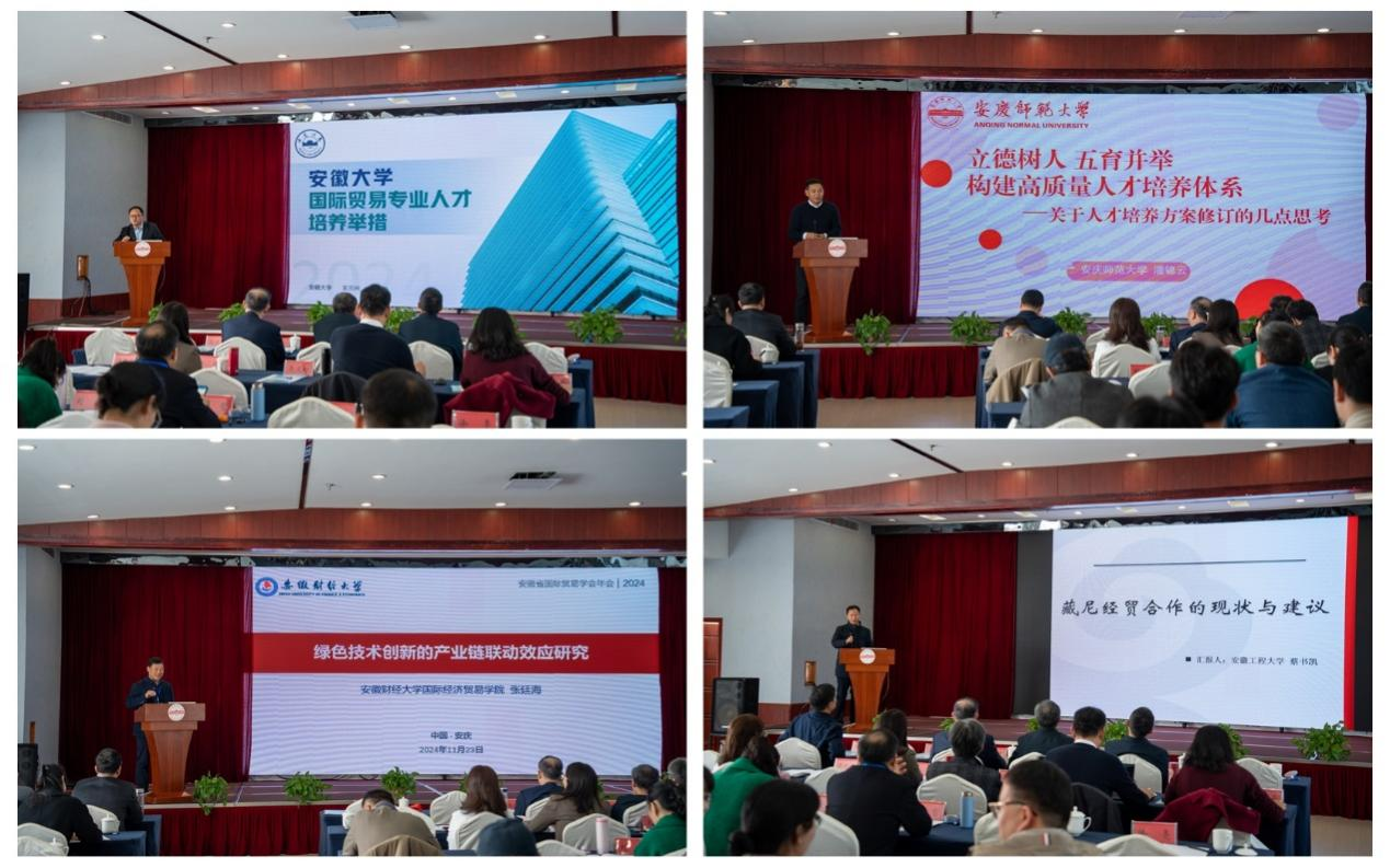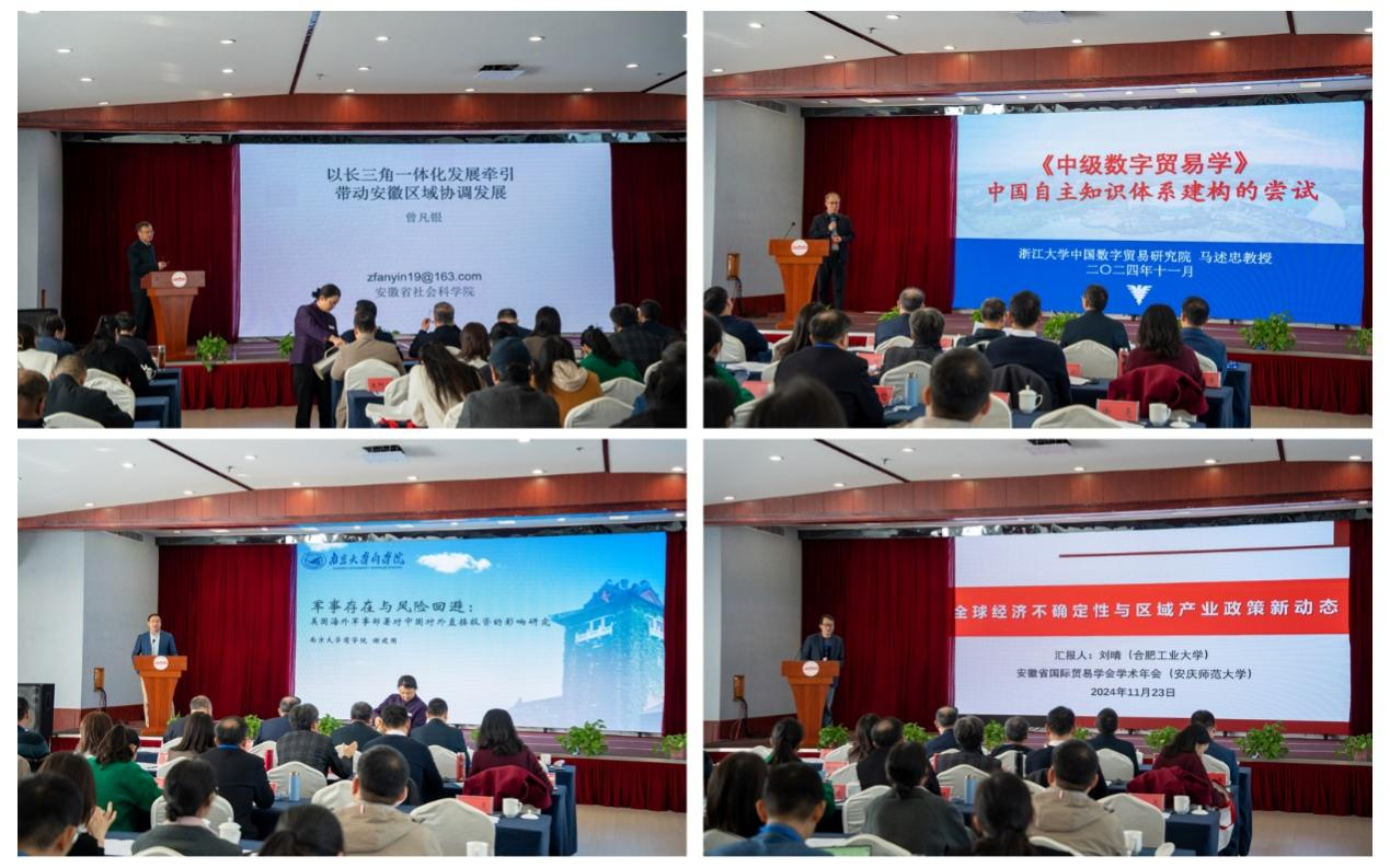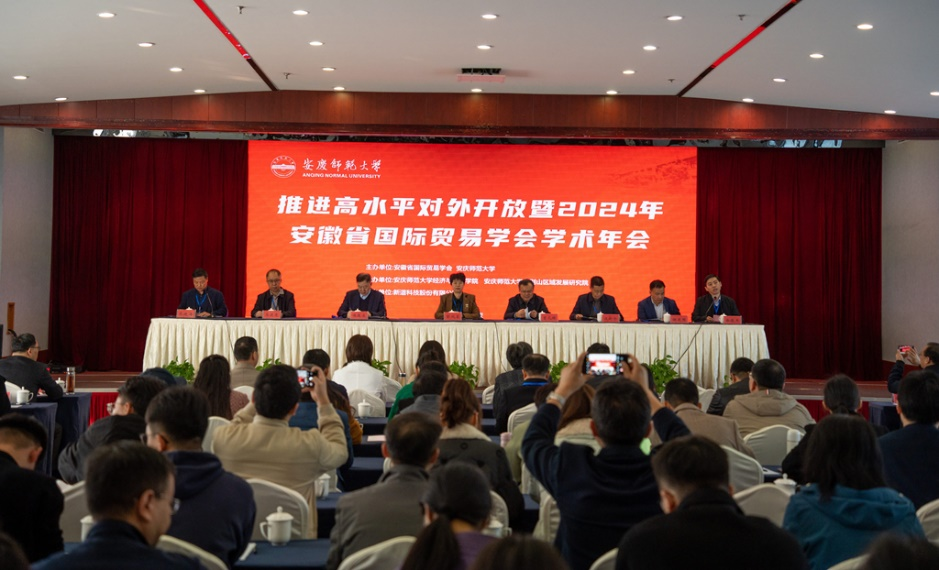 11月22日至23日,由beat365官网与安徽省国际贸易学会联合主办的“推进高水平对外开放暨2024年安徽省国际贸易学会学术年会”在安庆市举行。安徽省社会科学院党组书记、院长曾凡银,校长彭凤莲,安徽省国际贸易学会会长冯德连,蚌埠工商学院副校长汪时珍等出席开幕式。来自省内外近30所高校的150余位嘉宾参加年会,24位专家学者应邀做学术报告。
