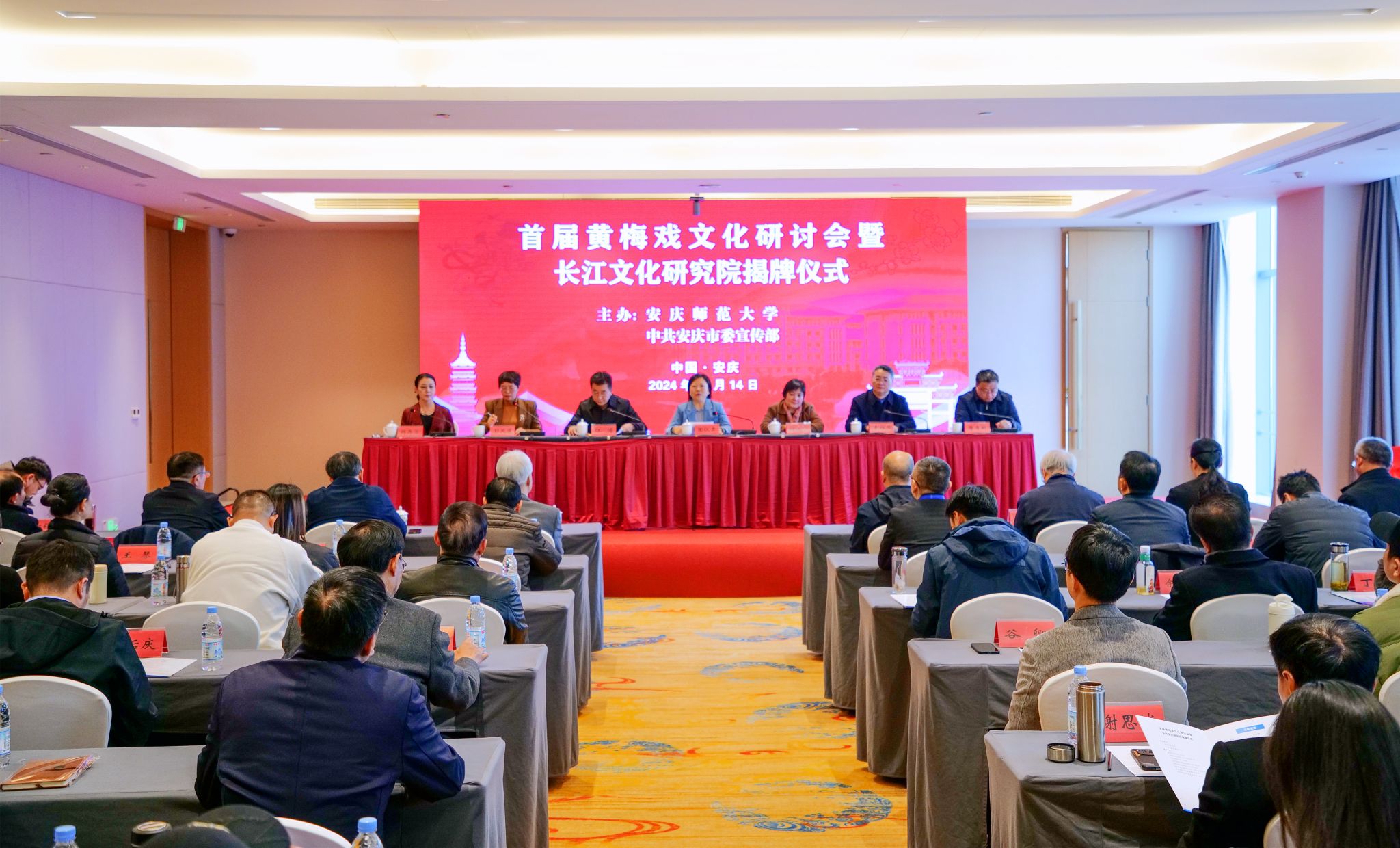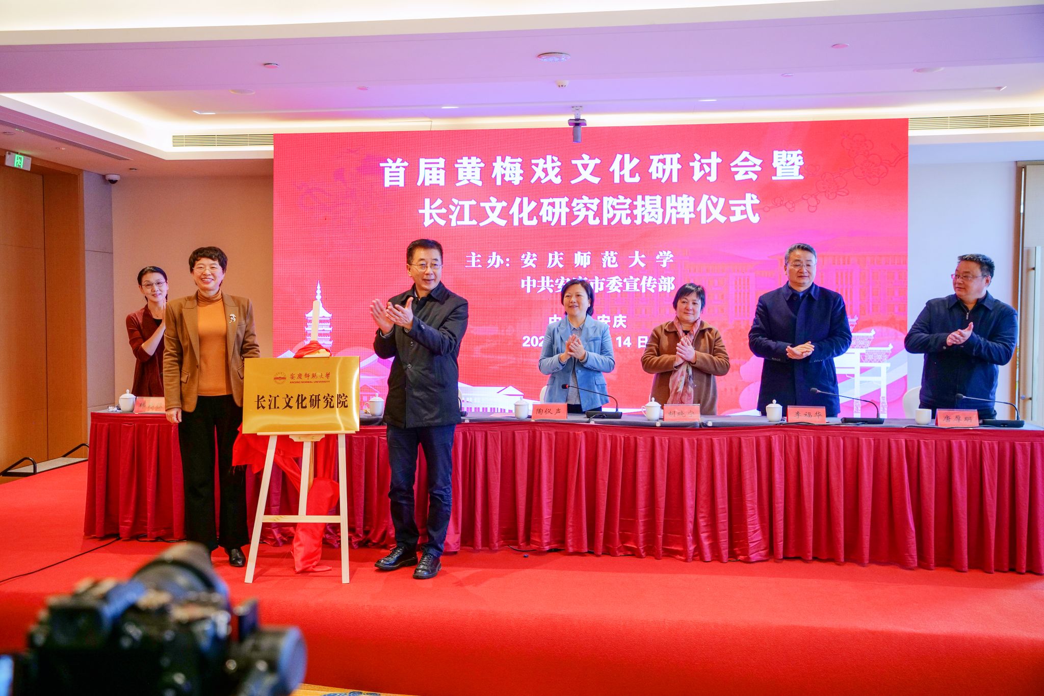 仪式上,李福华、唐厚明为黄梅戏文化研究院揭牌,江涛、彭凤莲为长江文化研究院揭牌。