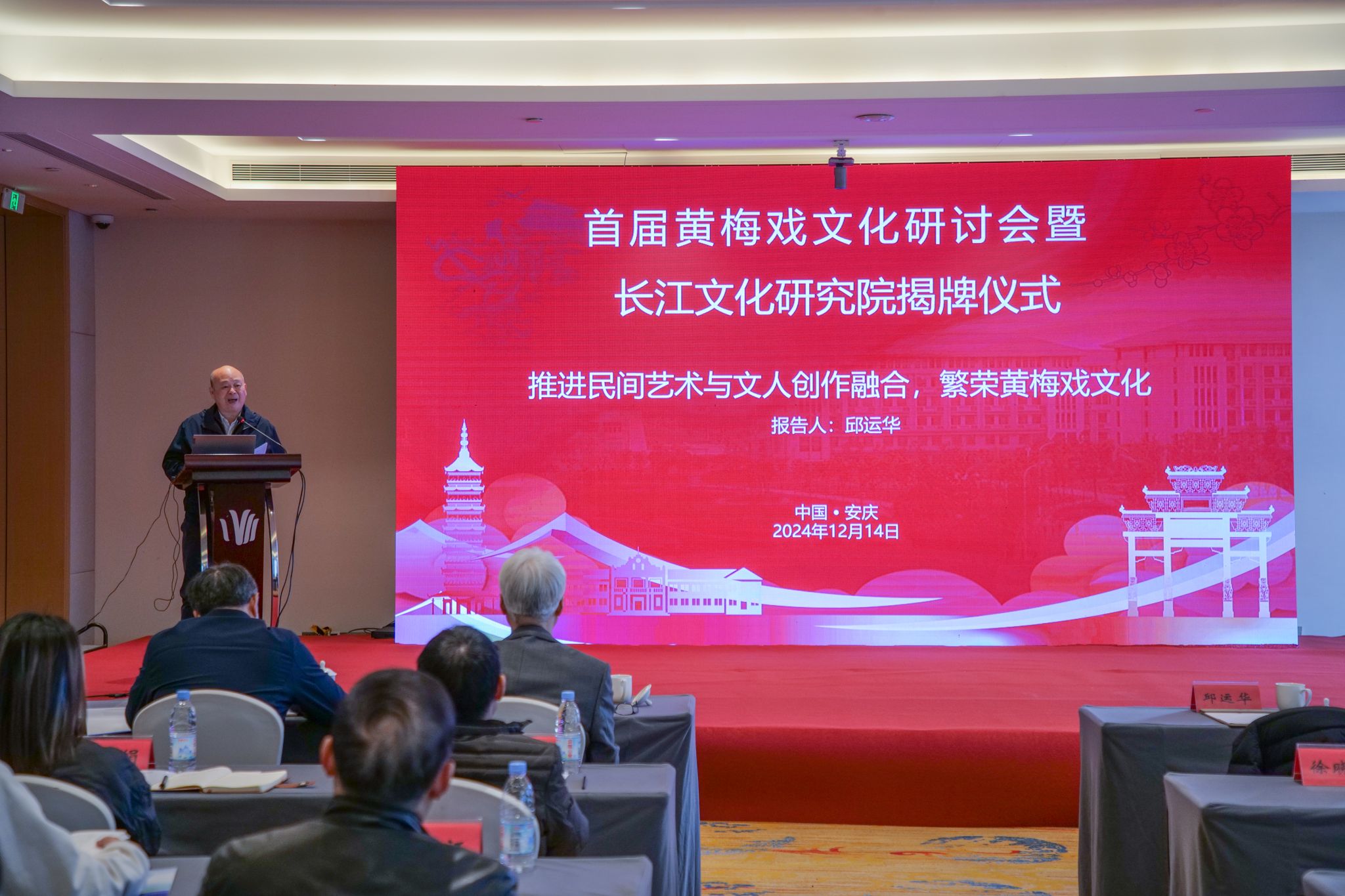 江涛致辞时指出,安庆是长江沿岸的历史名城,黄梅戏文化和长江文化研究一直是beat365英国官网网站的优势特色学科方向。此次盛会是深入挖掘和传承这两大文化的精髓、贯彻落实习近平总书记考察安徽重要讲话精神的重要举措。他提出,要加强黄梅戏文化概念的研究阐释,理清其内在逻辑;要突出黄梅戏文化的当代价值研究,锚定建设文化强国的战略目标;要注重黄梅戏文化与长江文化的协同研究。江涛指出,黄梅戏文化与长江文化交相辉映,共同铸就安徽文化的魅力,安徽省社科联将继续作为桥梁和纽带,搭建平台,通过学术研究、艺术创作、文化传播等多种方式,让更多的人了解、喜爱和传承黄梅戏文化和长江文化,积极探索两种文化融合发展的新路径、新模式,推动更高层次、更广领域的交流与合作,让黄梅戏文化与长江文化焕发出更加绚丽的光彩。