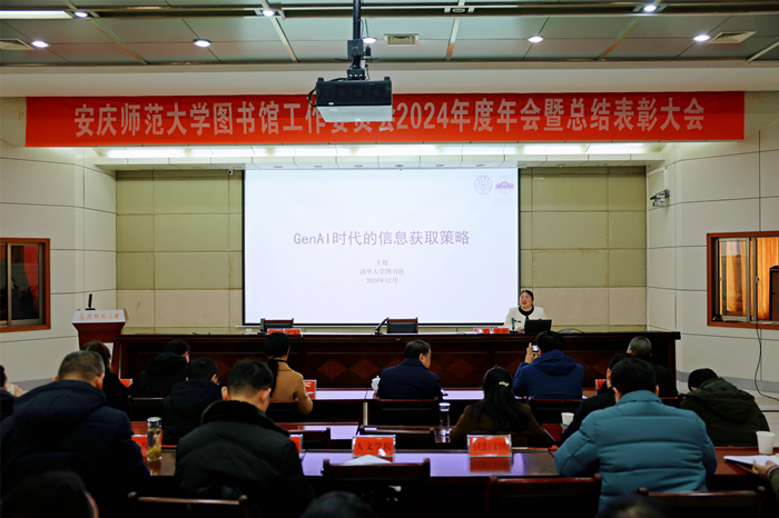 12月18日,学校图书馆工作委员会2024年度年会暨总结表彰大会在行政楼一楼会议室召开。校党委常委、副校长刘友忠,校党委常委、党委宣传部部长陈秀出席会议。校图书馆工作委员会全体委员、图书馆全体员工和获奖师生代表参加会议,清华大学图书馆信息参考部副主任王媛受邀作辅导报告。会议由陈秀主持。