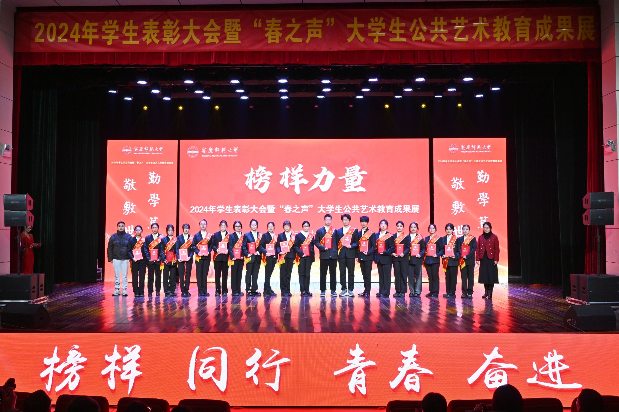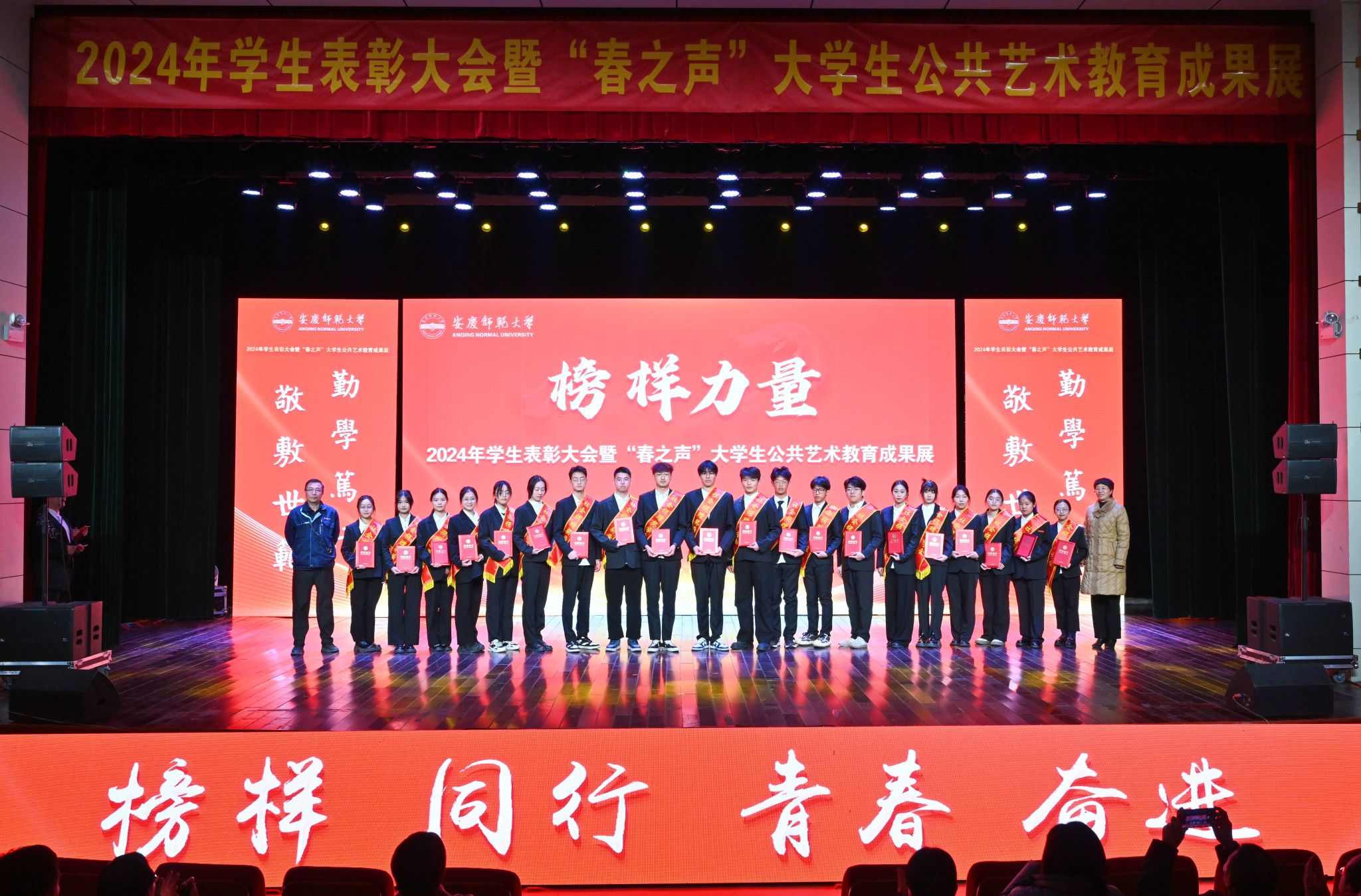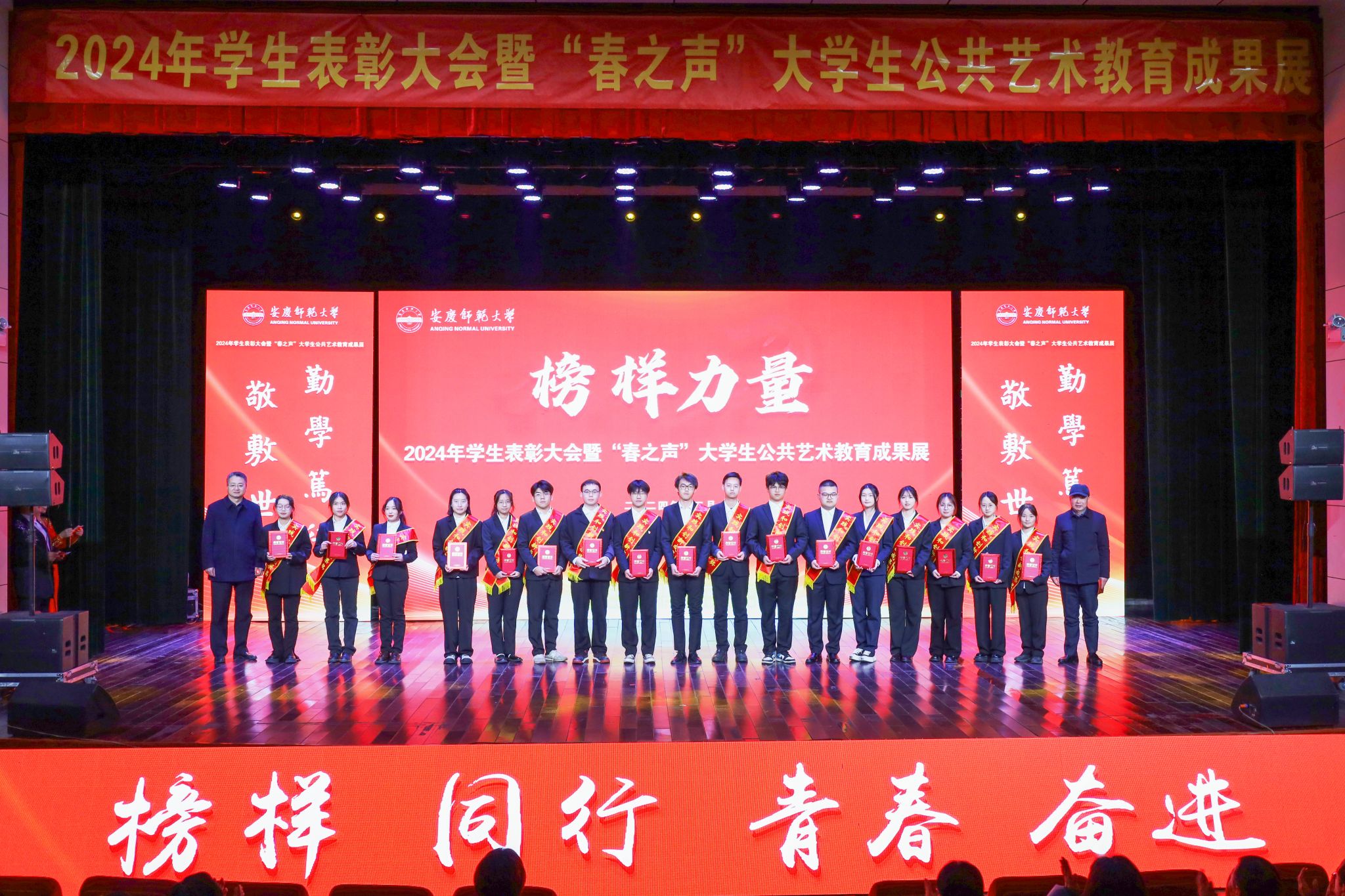 12月19日,学校在音乐厅举行2024年学生表彰大会暨“春之声”大学生公共艺术教育成果展。校领导李福华、彭凤莲、崔明、刘友忠、肖新、秦朗、徐晓宁,校党委常委陈秀、张红飞出席活动。学校有关部门主要负责人,各学院党政负责人,2024年“三全育人”最美老师代表、校友和社会爱心企业、爱心人士代表,全体辅导员及200余名学生代表参加大会。