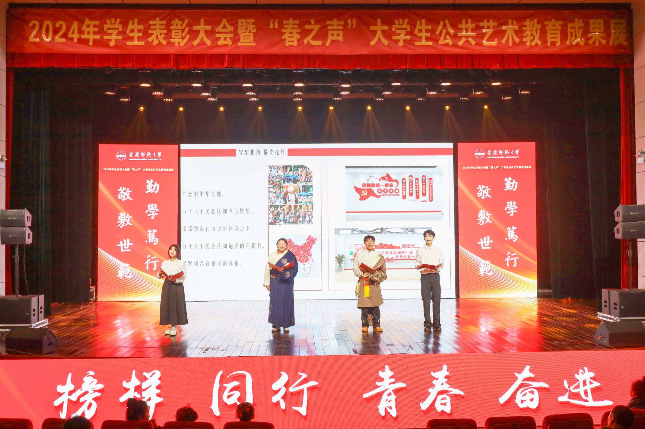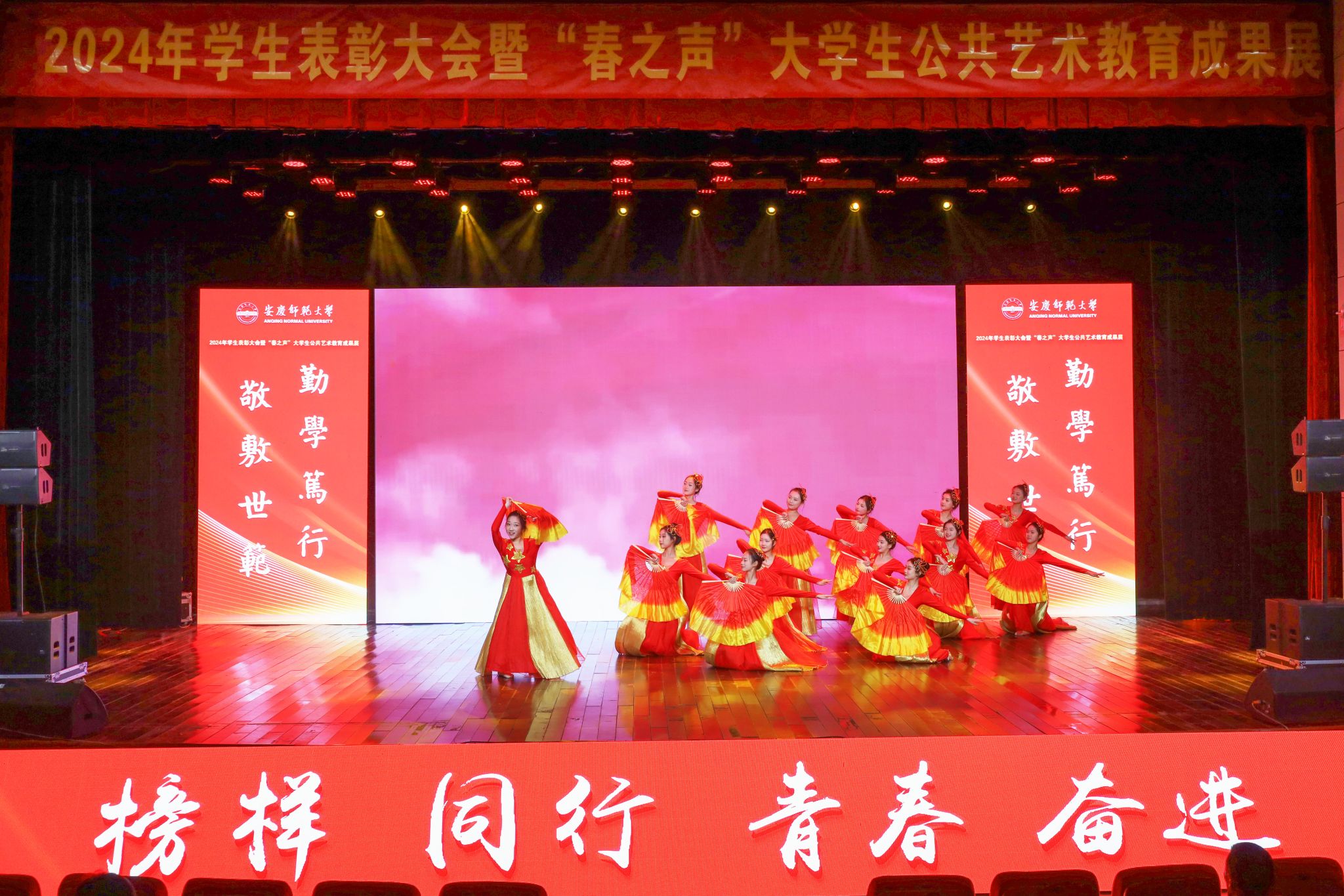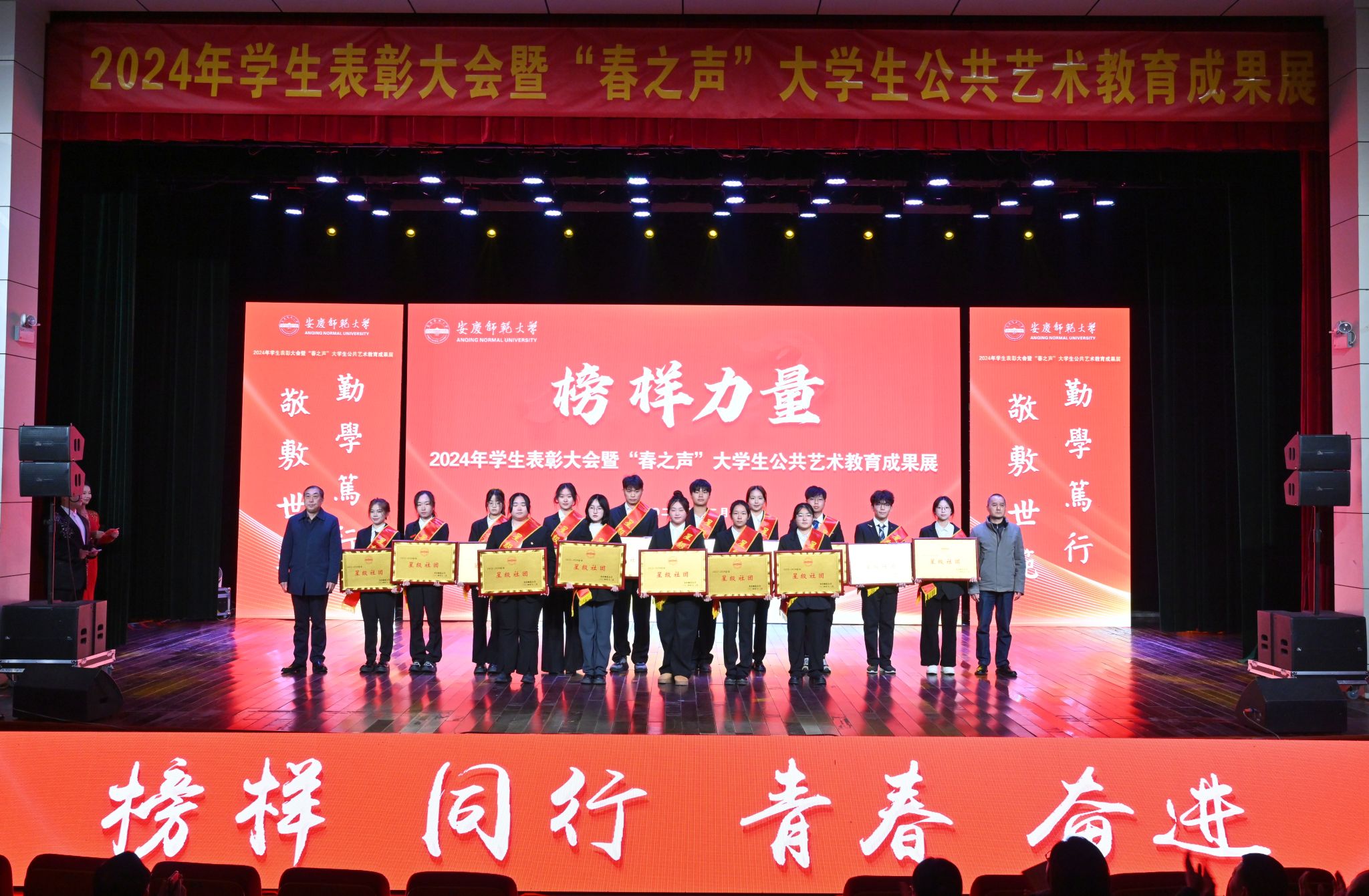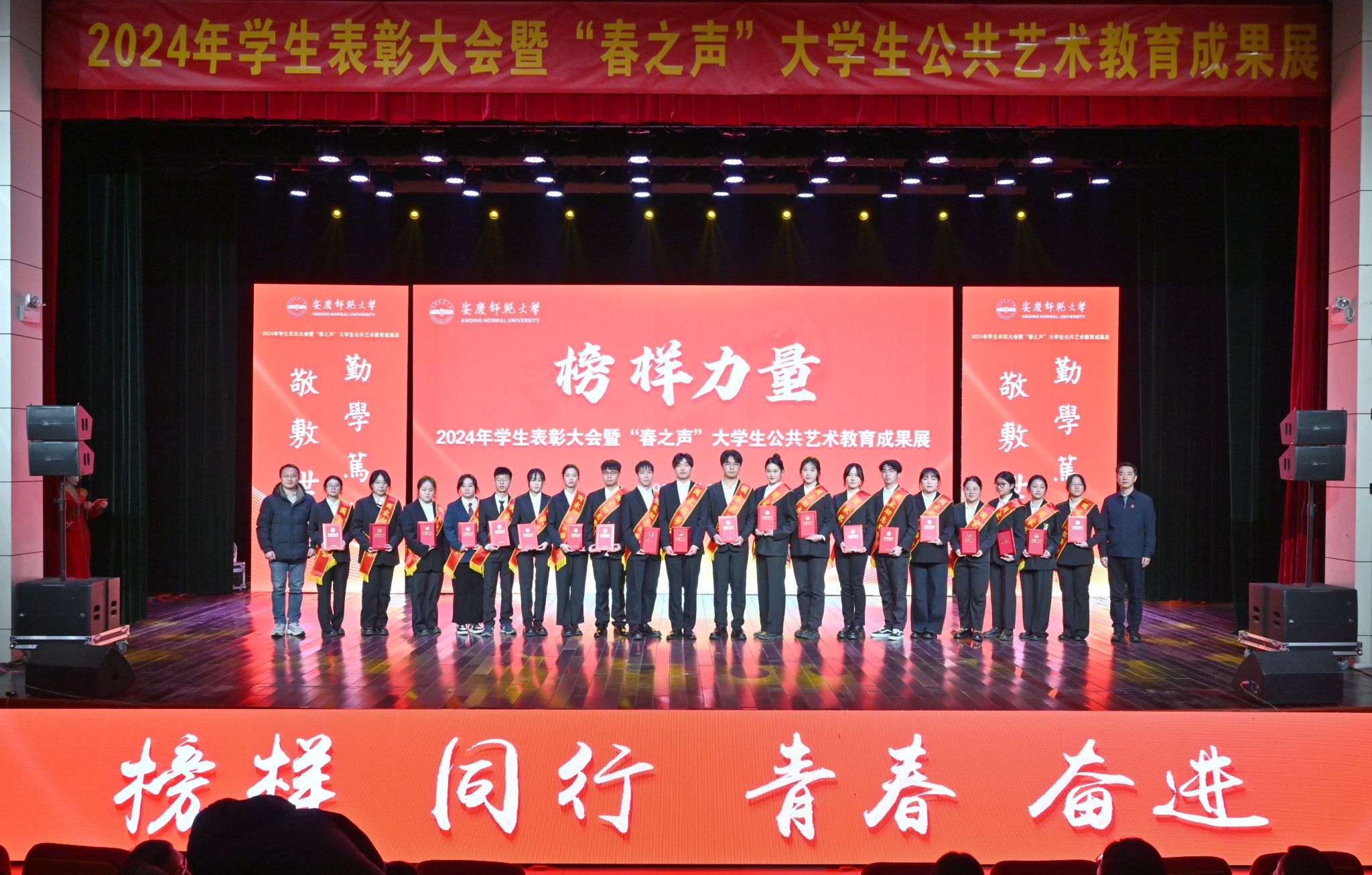 12月19日,学校在音乐厅举行2024年学生表彰大会暨“春之声”大学生公共艺术教育成果展。校领导李福华、彭凤莲、崔明、刘友忠、肖新、秦朗、徐晓宁,校党委常委陈秀、张红飞出席活动。学校有关部门主要负责人,各学院党政负责人,2024年“三全育人”最美老师代表、校友和社会爱心企业、爱心人士代表,全体辅导员及200余名学生代表参加大会。