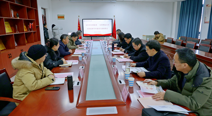 12月20日,安庆市委常委、市纪委书记、市监委主任耿延强来校调研纪检监察学科建设。校长彭凤莲会见耿延强一行,校党委常委、纪委书记、监察专员秦朗主持交流座谈会。