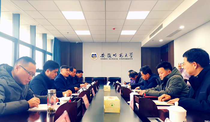 12月27日,校党委常委、副校长申传胜带队赴安徽师范大学调研。安徽师范大学党委常委、副校长曾黎明主持调研座谈会。