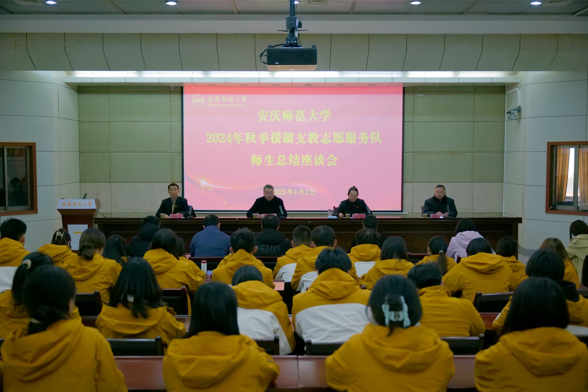 1月2日,beat365官网召开2024秋季学期援疆支教志愿服务队师生总结座谈会。校党委书记李福华,校党委常委、副校长吴琼,校党委常委张红飞、计裕人,人事处、教务处、研究生院、团委、各相关学院负责人参加会议。会议由吴琼主持。