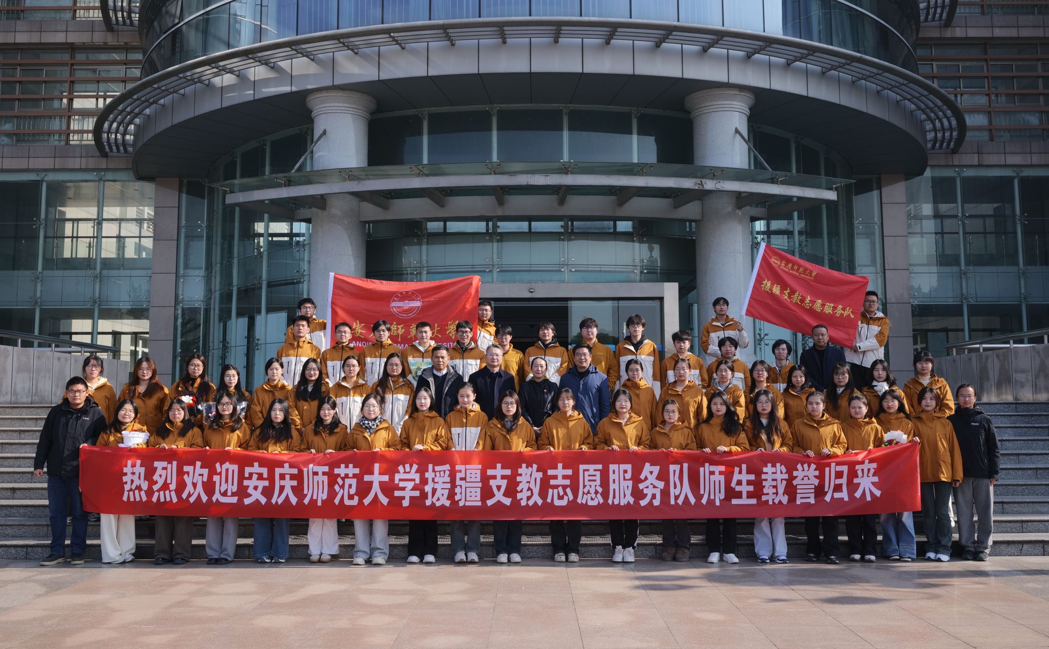李福华向援疆支教志愿服务队全体师生的平安返校表示欢迎,对大家为学校所争取的荣誉表示衷心的感谢,并向同学们取得的丰硕成果致以诚挚的祝贺。他强调,要贯彻民族政策,维护民族团结,做民族团结进步的宣传者、践行者、维护者,推进中华民族共同体建设;要坚守教育初心,厚植教育情怀,继续保持对教育事业的热情,将援疆支教经验转化为前进的动力;要扎根基层沃土,潜心教书育人,到祖国最需要的地方去,用实际行动诠释新时代青年的家国情怀与责任担当。