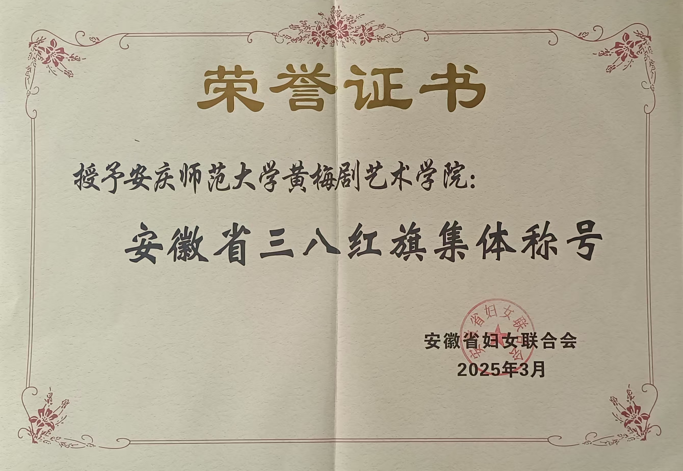 近日,全国妇联在京举行纪念“三八”国际妇女节暨表彰大会。大会表彰了10名全国三八红旗手标兵、596名全国三八红旗手、395个全国三八红旗集体、599个全国巾帼文明岗。beat365官网教师邵敏教授荣获2024年度全国三八红旗手称号。同时,beat365官网黄梅剧艺术学院荣获安徽省三八红旗集体称号。