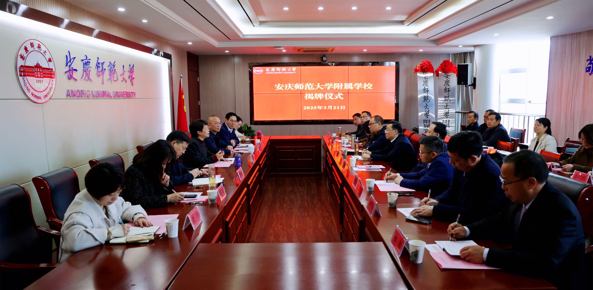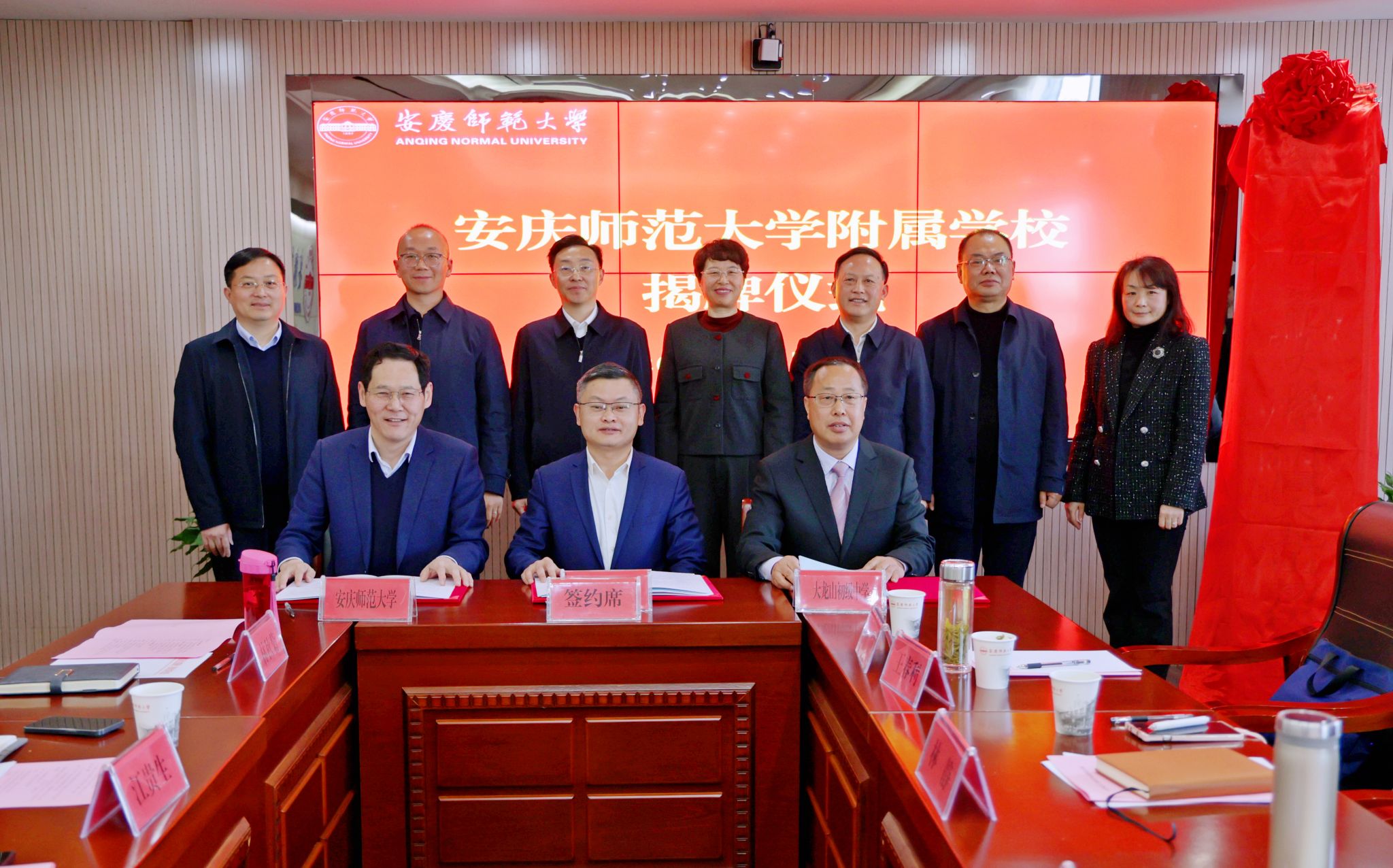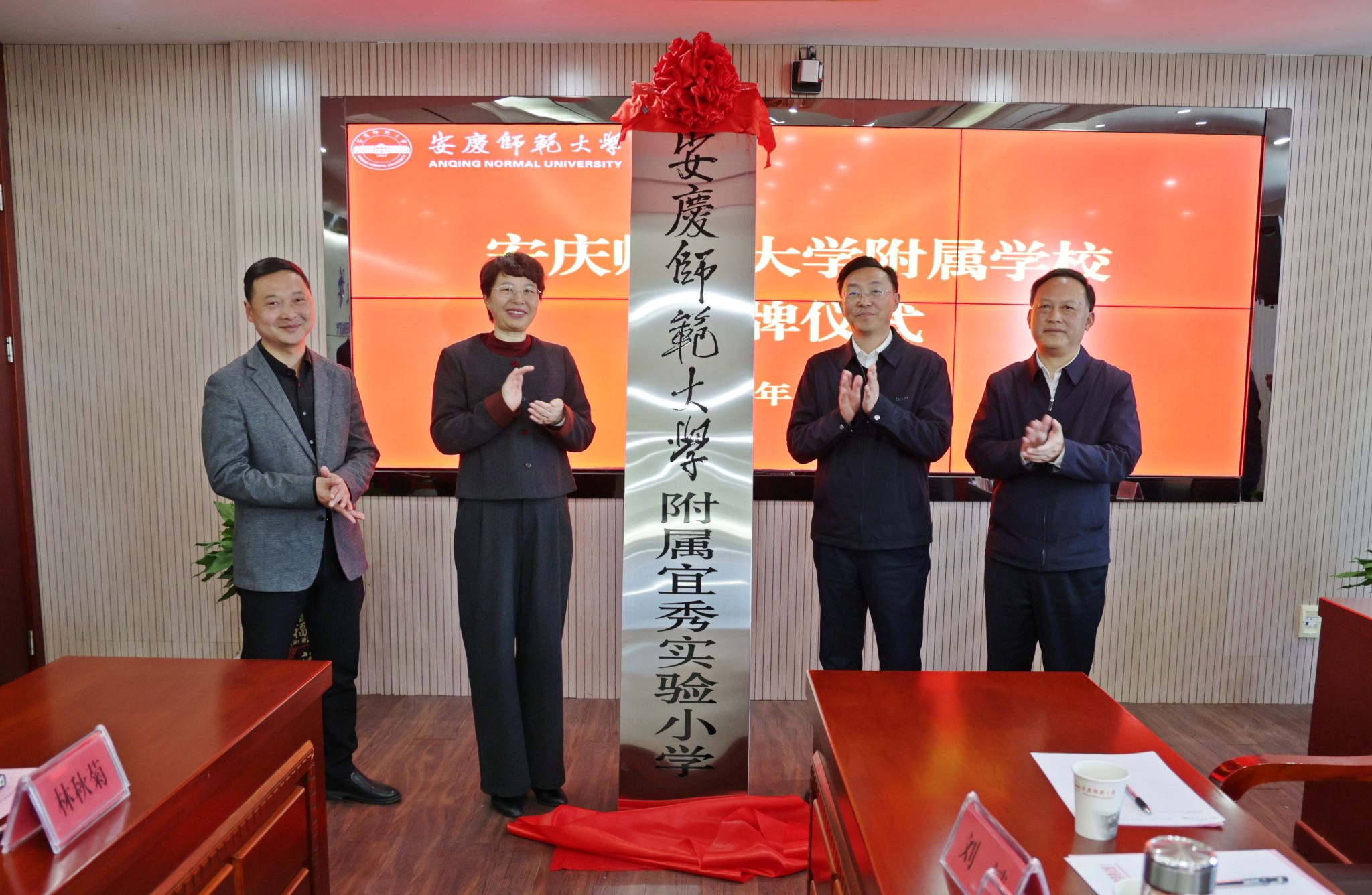 3月21日,学校与宜秀区人民政府举行beat365英国官网网站附属学校揭牌仪式。校长彭凤莲,宜秀区委副书记、区政府党组书记、区长吴曙,安庆市委教体工委书记、市教体局局长王良宜出席仪式。仪式由校党委常委、副校长肖新主持。安庆市教体局、宜秀区教体局、大龙山初级中学、宜秀区实验小学负责人,beat365官网人事处、教务处、服务经济社会发展处、研究生院、学生工作处和各师范专业所在学院主要负责人参加仪式。