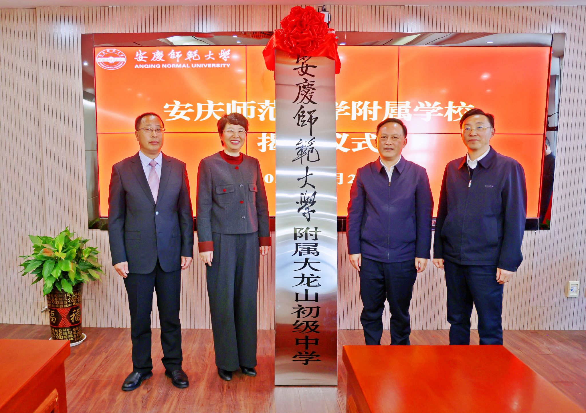 彭凤莲向宜秀区委、区政府和安庆市教体局对学校教育事业发展给予的关心和支持表示感谢。她表示,此次合作共建附属学校,是校地双方深入贯彻落实党的二十届三中全会精神和习近平总书记在安徽考察时重要讲话精神的重要举措,是市、区基础教育领域的一件大事,是beat365官网“三附”建设进程中的关键节点,也是更好满足人民群众“上好学”美好愿望的积极探索。她强调,产业发展离不开人才,人才培养依靠教育,校地双方共建附属学校既能满足双方内在需求,又能推进基础教育发展,提升教育质量,增强人民群众幸福感。她希望,校地双方以此次揭牌仪式为契机,进一步加强沟通交流与深度合作,充分发挥自身优势,积极探索创新,努力将附属学校建设成为高质量、有特色、现代化的示范学校,为宜秀区乃至安庆市的教育事业发展贡献师大力量。
