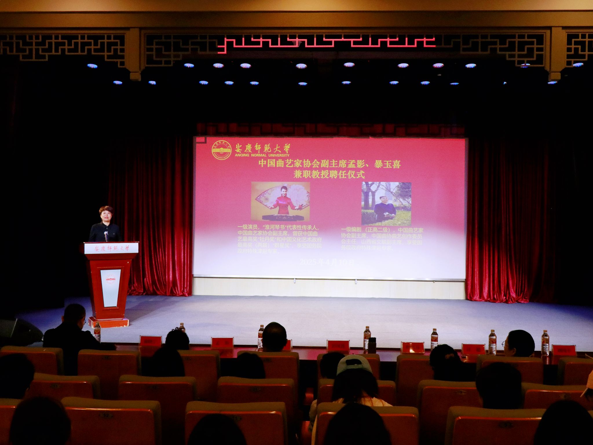4月10日,学校举办曲艺学科兼职教授聘任仪式暨专家报告会。中国曲艺家协会副主席孟影、暴玉喜,校长彭凤莲,校党委常委、副校长徐晓宁,中国戏剧家协会副主席、黄梅剧艺术学院学术院长韩再芬,黄梅剧艺术学院班子成员及师生代表参加聘任仪式和报告会。聘任仪式由徐晓宁主持。