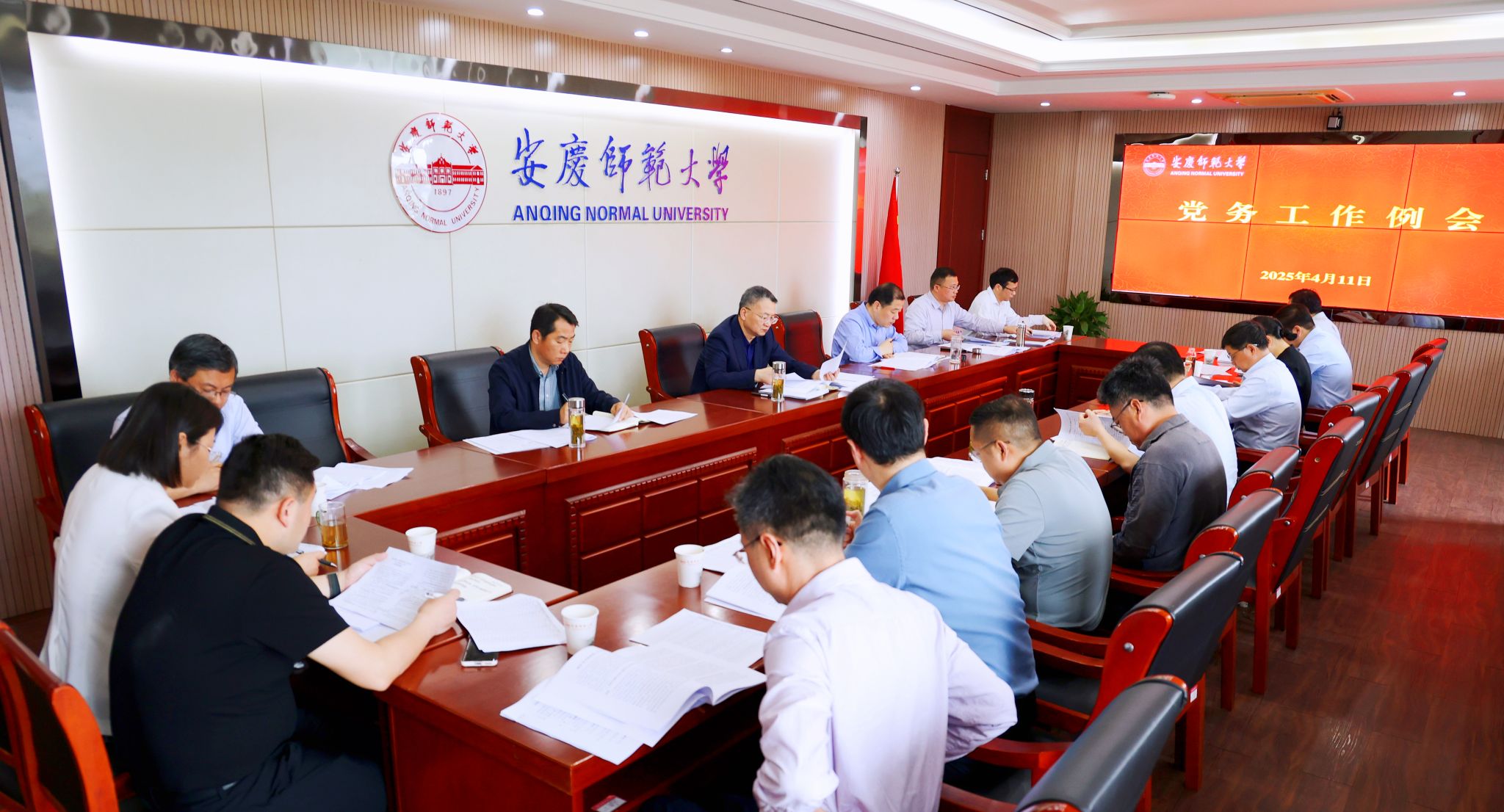 4月11日,学校召开党务工作例会。校党委书记李福华出席会议,校党委副书记崔明主持会议,校党委常委张红飞、计裕人,各院级党组织、党群部门负责人参加会议。