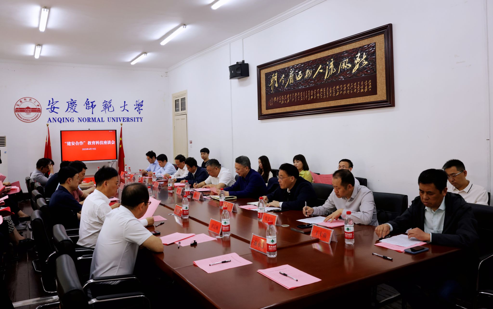 4月19日,“建安合作”教育科技座谈会在菱湖校区举行。校党委书记李福华、民建中央教科委员会主任苏华出席会议,会议由安庆市委副书记廖强主持。安庆职业技术学院和安庆医药高等专科学校主要负责人,市教体局、市科技局、安徽曙光化工集团、安徽安簧机械股份有限公司负责人,民建中央教科委员会委员30余人和校服务经济社会发展处负责人参加会议。