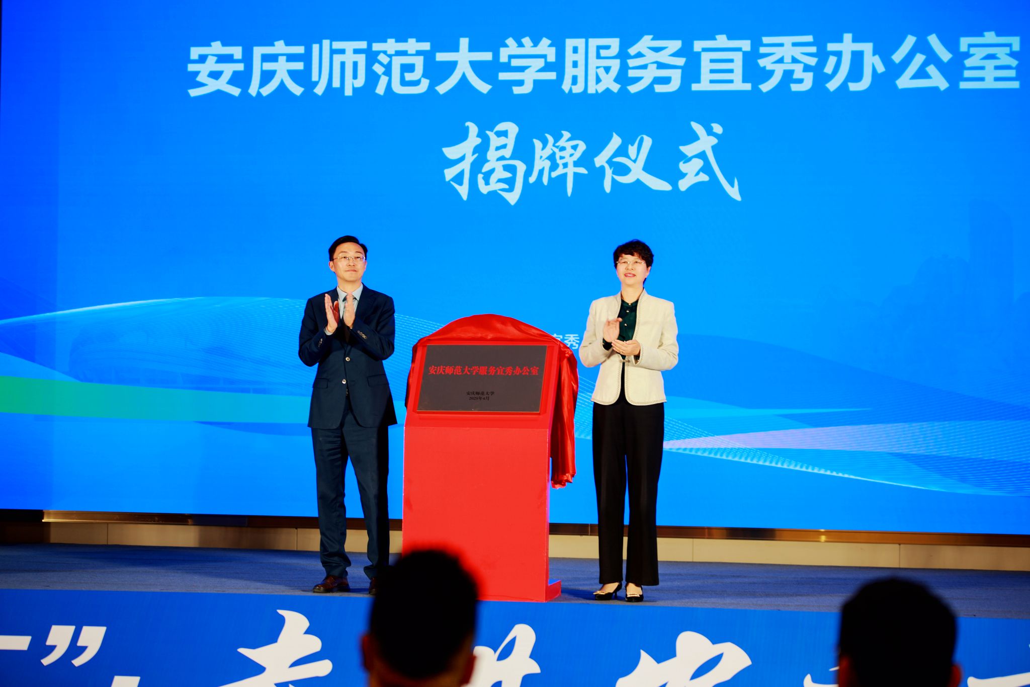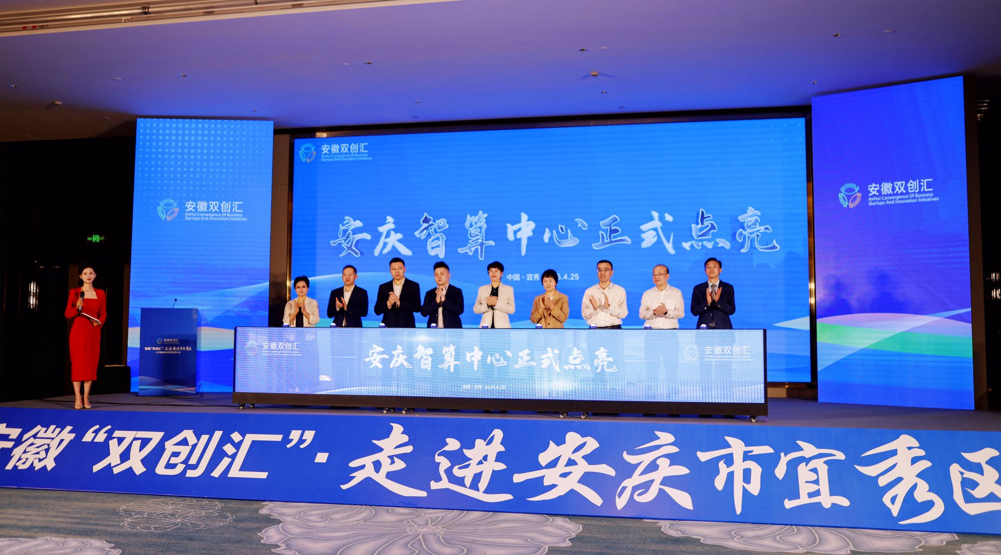 开幕式上,彭凤莲与省科技厅、安庆市人民政府、宜秀区人民政府等相关负责人参加“智算中心”点亮仪式。彭凤莲和吴曙为“beat365英国官网网站服务宜秀办公室”揭牌。