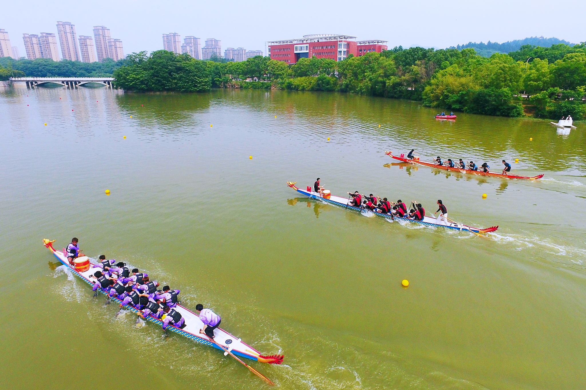 5月25日上午,学校校园体育文化节暨第三届大学生龙舟赛、教职工龙舟友谊赛顺利举办,共有12支学生队伍、9支教工队参加了比赛。