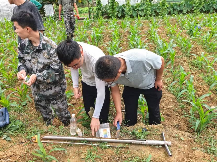 团队的青年博士和学生是本次野外校核的主力军,资源环境学院地理科学专业的王鑫博士、孙俊博士,环境科学与工程专业的教师杨雪博士、生态学专业的潘畅博士,是这次任务的重要领队。这群年均32岁刚入职不久的博士们从三尺讲台走到田间地头,用皮尺丈量土层厚度,用手指感受土壤质地,用仪器检测土壤环境数据。他们身先士卒,带领学生把土壤学的课程内容在祖国的西南大地进行温故知新。“云南省的山多地少,耕地尤显金贵,为了全面了解云南这些县区的土壤和土地利用类型变化,我们绝不能放弃任何一块需要校核的土壤类型图斑!”王鑫在野外校核培训现场说到。