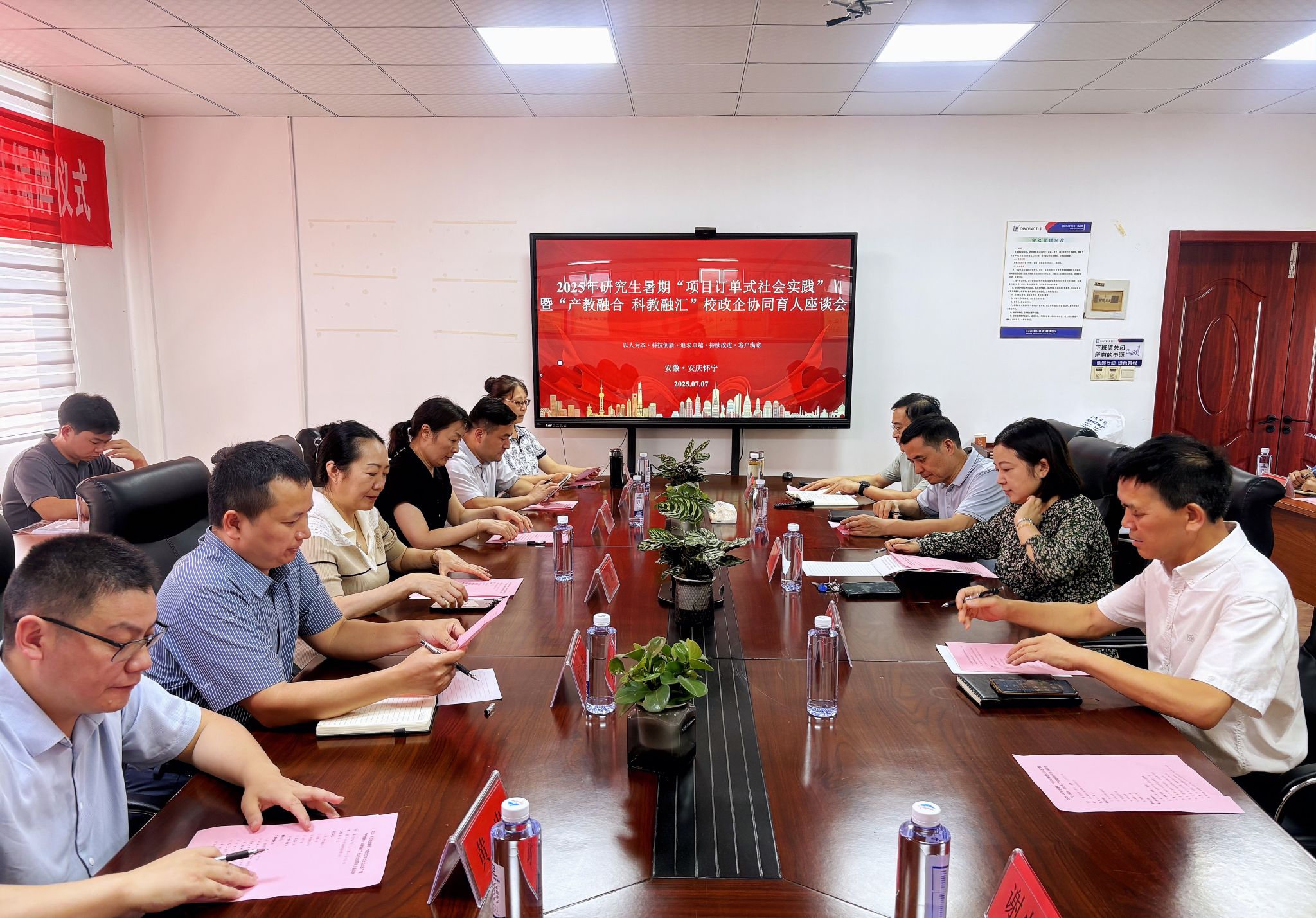 在2025年研究生暑期“项目订单式社会实践”暨“产教融合 科教融汇”校政企协同座谈会上,听取团队指导教师和钦丰科技(安徽)股份有限公司负责人的介绍后,吴琼强调,学校要进一步以地方产业需求为导向,优化课程体系,强化实践教学,不断提升人才培养与地方需求的契合度;校政企要继续深化合作机制,构建产教融合体系,在推动高校人才培养应用型转型中不断强化科技创新和成果转化,实现共赢。
