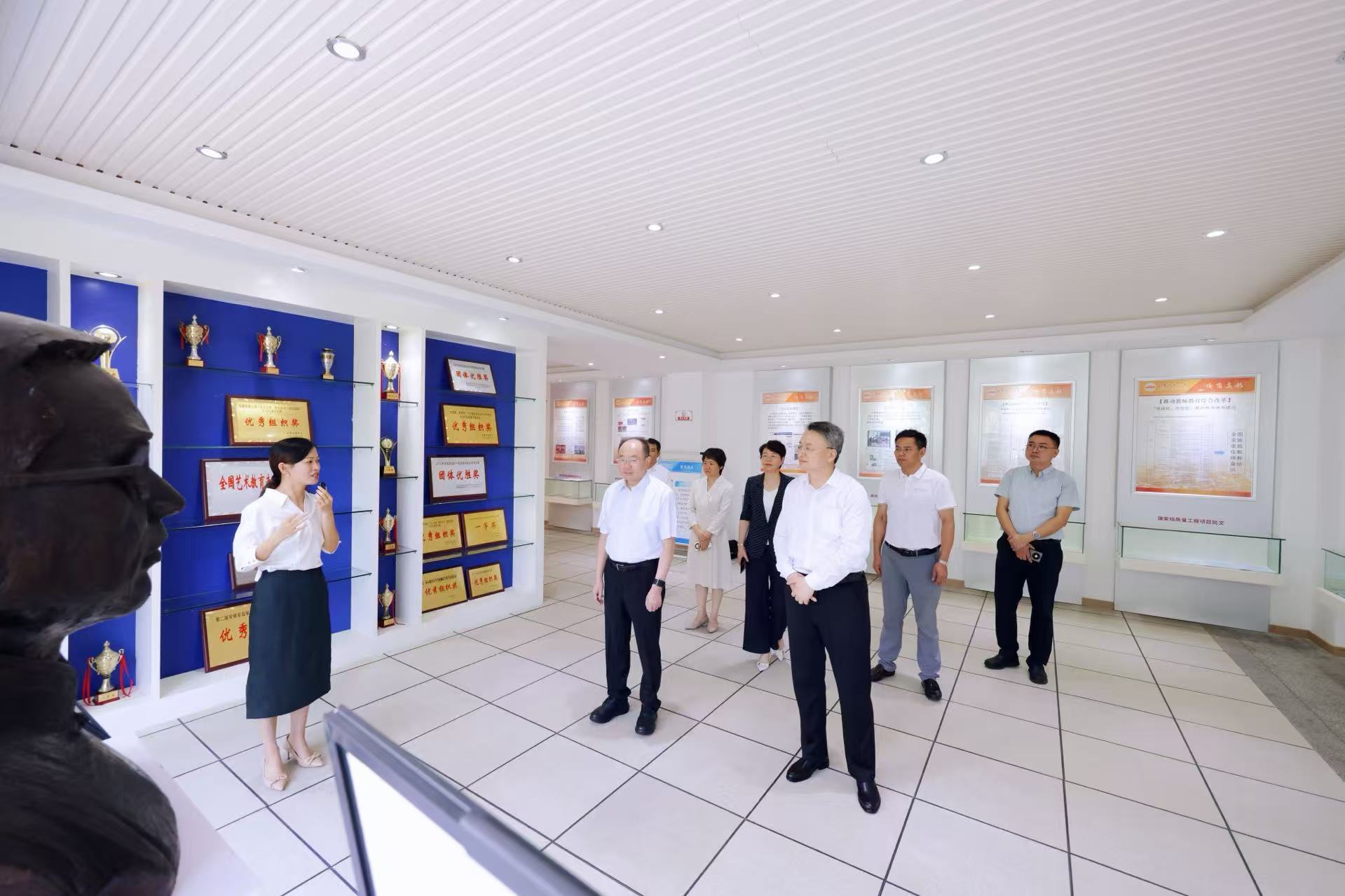 7月10日,安徽省委教育工委书记、省教育厅厅长钱桂仑来校调研。校党委书记李福华、校长彭凤莲和安庆市政府副市长李岩陪同调研。