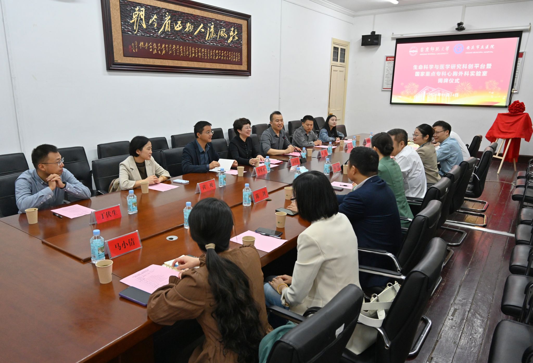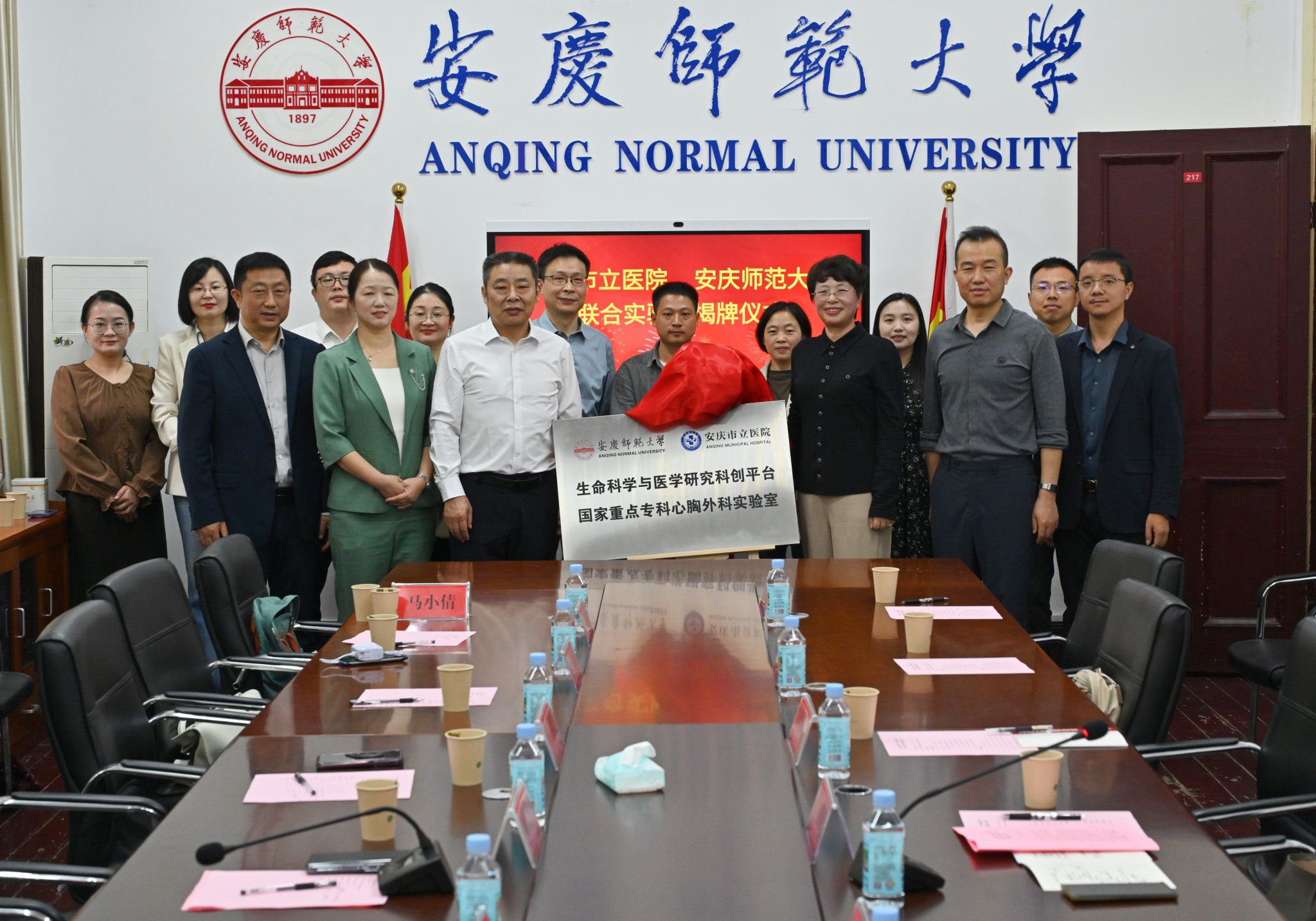 9月24日,由学校和安庆市立医院共建的“生命科学与医学研究科创平台暨国家重点专科心胸外科实验室”揭牌仪式在红楼举行。校长彭凤莲与安庆市立医院党委副书记、院长刘建共同为实验室揭牌。安庆市立医院党委委员、副院长朱娟,双方相关职能部门负责人、学科带头人及科研骨干出席仪式。
