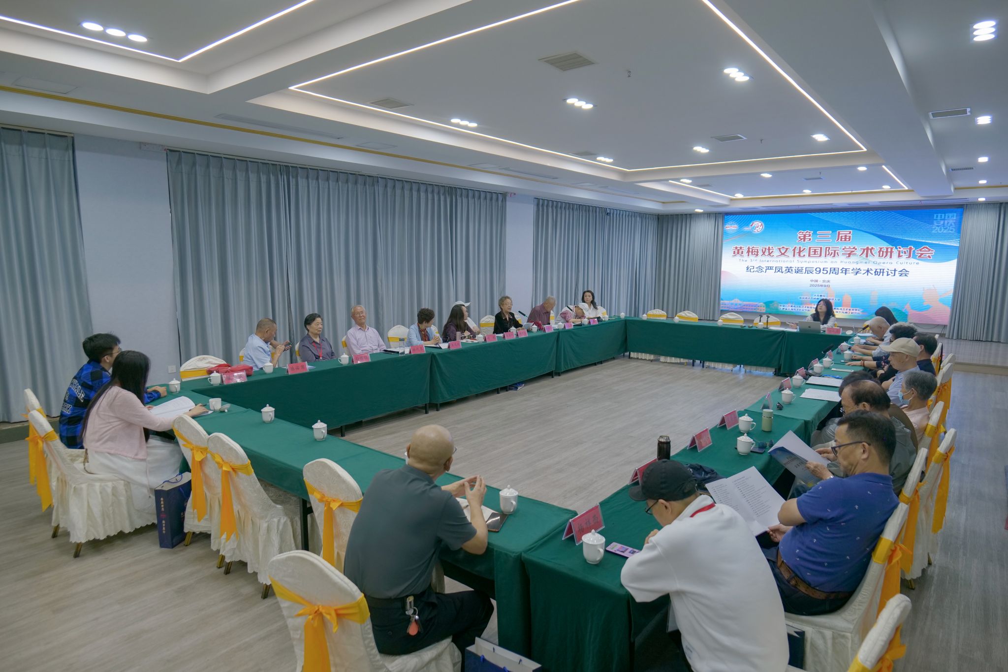 9月25日至27日,由安庆市人民政府和beat365英国官网网站共同主办的第三届黄梅戏文化国际学术研讨会在宜召开。安徽省政协党组成员、副主席张祥安,安徽省社科联党组成员林勇,校党委书记李福华、校长彭凤莲,安庆市人民政府副市长李岩,天津市文联党组原书记万镜明,中国戏剧家协会副主席、beat365英国官网网站黄梅剧艺术学院学术院长韩再芬等出席开幕式。李福华主持开幕式。校党委常委、副校长徐晓宁主持闭幕式。来自日本、韩国、新加坡、俄罗斯等国以及国内40余所高校、研究院所和戏曲院团的100余位专家学者,学校相关职能部门负责人、黄梅剧艺术学院及师生代表参加研讨会。