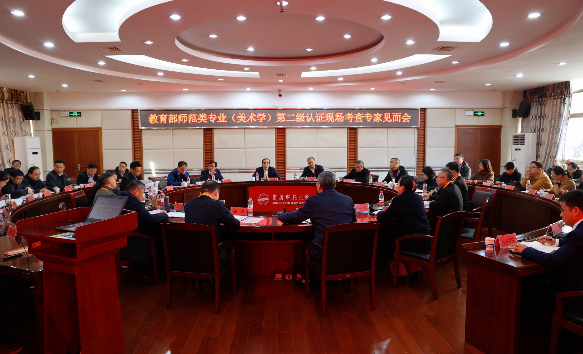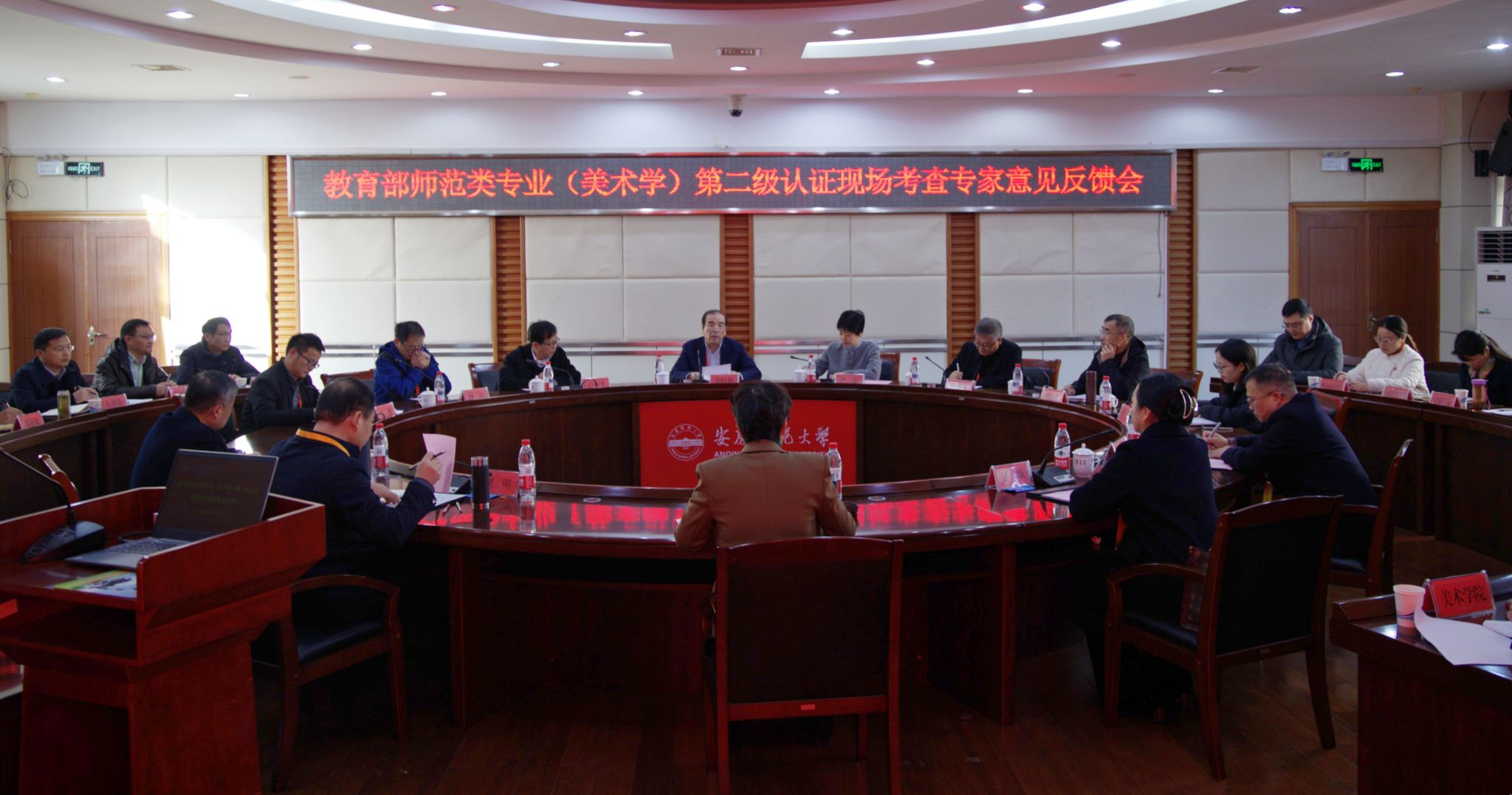 11月26日上午,关松林主持召开专家组见面会。专家组全体成员,安徽省教育评估中心负责人,学校党政领导李福华、崔明、吴琼、秦朗、徐晓宁、申传胜、张红飞、计裕人出席会议。安徽省教育评估中心负责人宣读认证文件、介绍专家组成员及与会人员,并对相关工作提出具体要求。