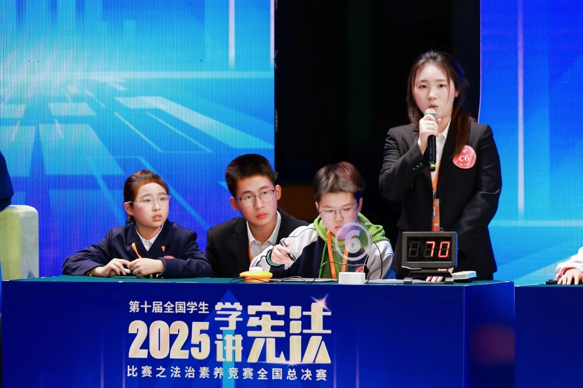 作为覆盖全国大中小学各学段的法治教育核心赛事,本次总决赛设演讲比赛与法治素养竞赛两大项目,涵盖四个组别,吸引全国300余名选手同台竞技。法治素养竞赛以省级代表队为单位开展团队角逐,赵元毓以安徽省赛区高校组第一名的成绩晋级,随后代表安徽省参赛。