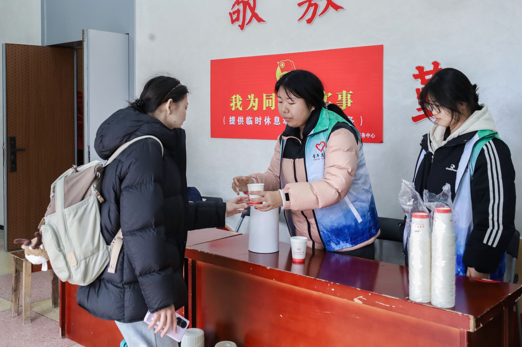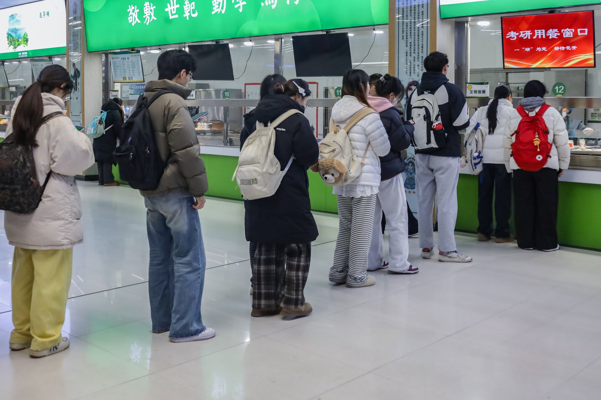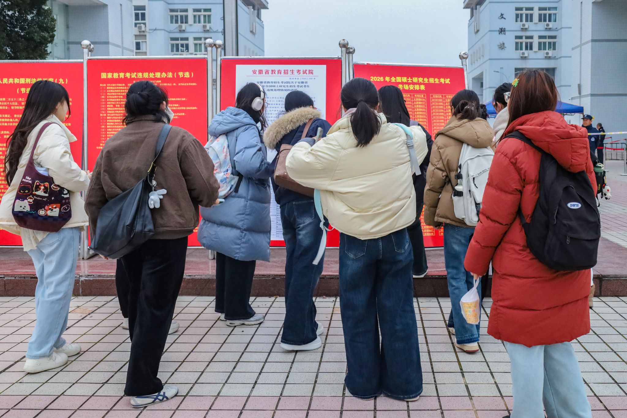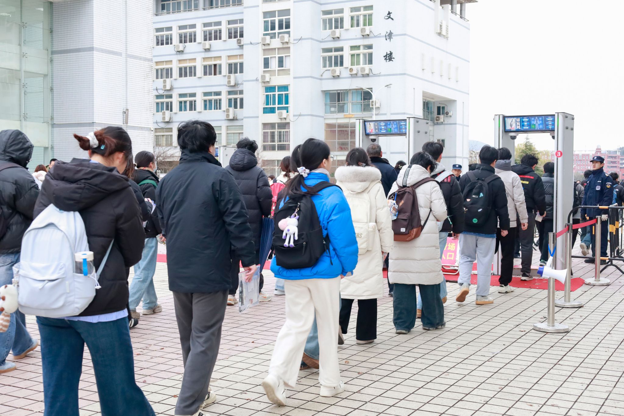 学校坚持以生为本,在严肃考风考纪的同时,努力做好考生服务保障工作。针对因身体特殊情况无法通过智能安检的考生,安排专人提供人工安检服务;为方便菱湖校区考生,统一安排往返送考专车;开展“我为学生做实事”系列活动,在教学楼内提供文具用品和准考证打印服务,在图书馆东报告厅和“一站式”学生社区学生事务服务中心设立休息点,为学生供应热水、空调,营造温馨便利的考试环境;发放考研专属餐券,在食堂开设专属窗口,凭准考证可享受免费或优惠套餐,免费供应热饮、夜宵和冬至专属汤圆、水饺。