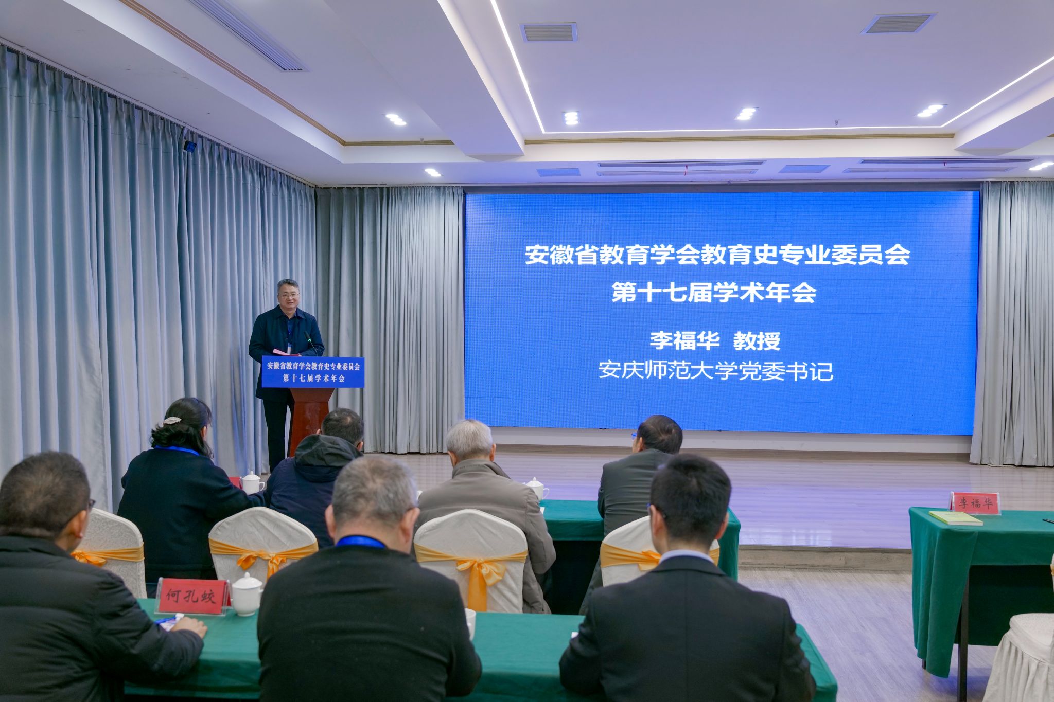 12月20日至21日,学校举办安徽省教育学会教育史专业委员会第十七届学术年会。校党委书记李福华教授,安徽省教育学会教育史专业委员会名誉理事长朱镜人教授、理事长孙德玉教授等出席开幕式。