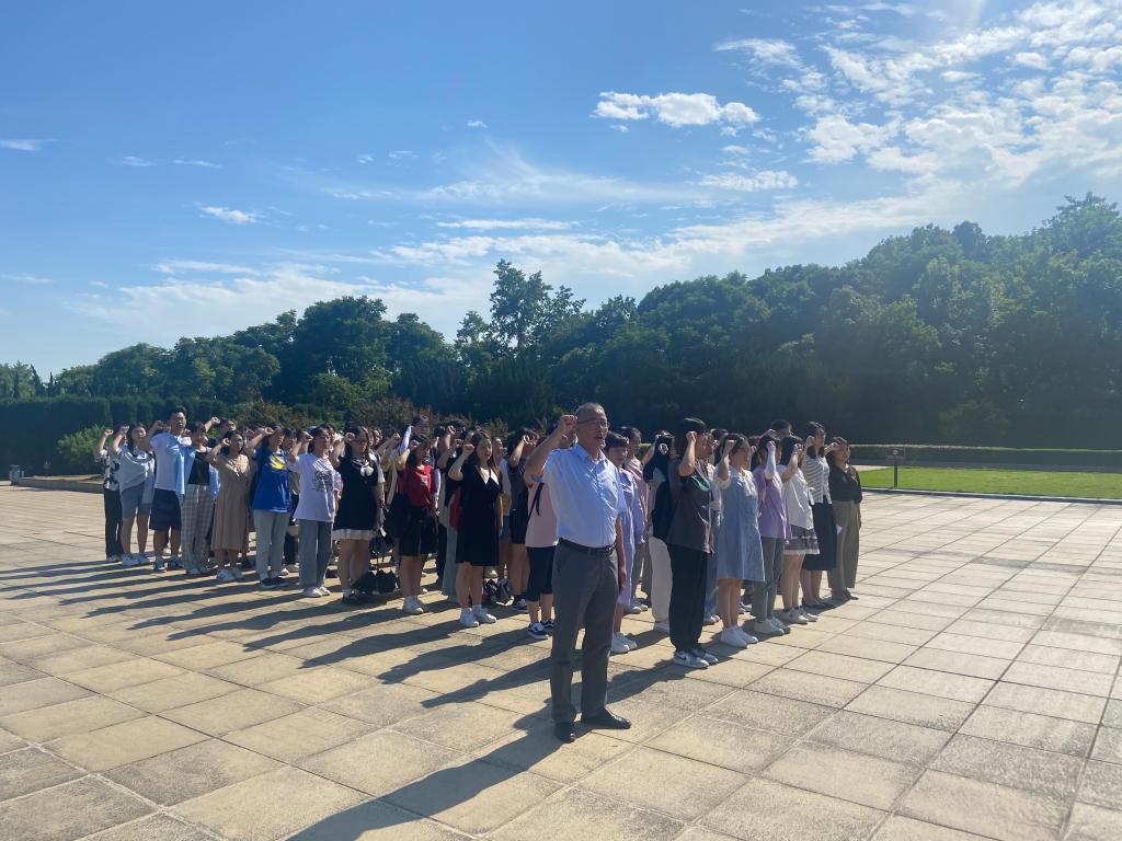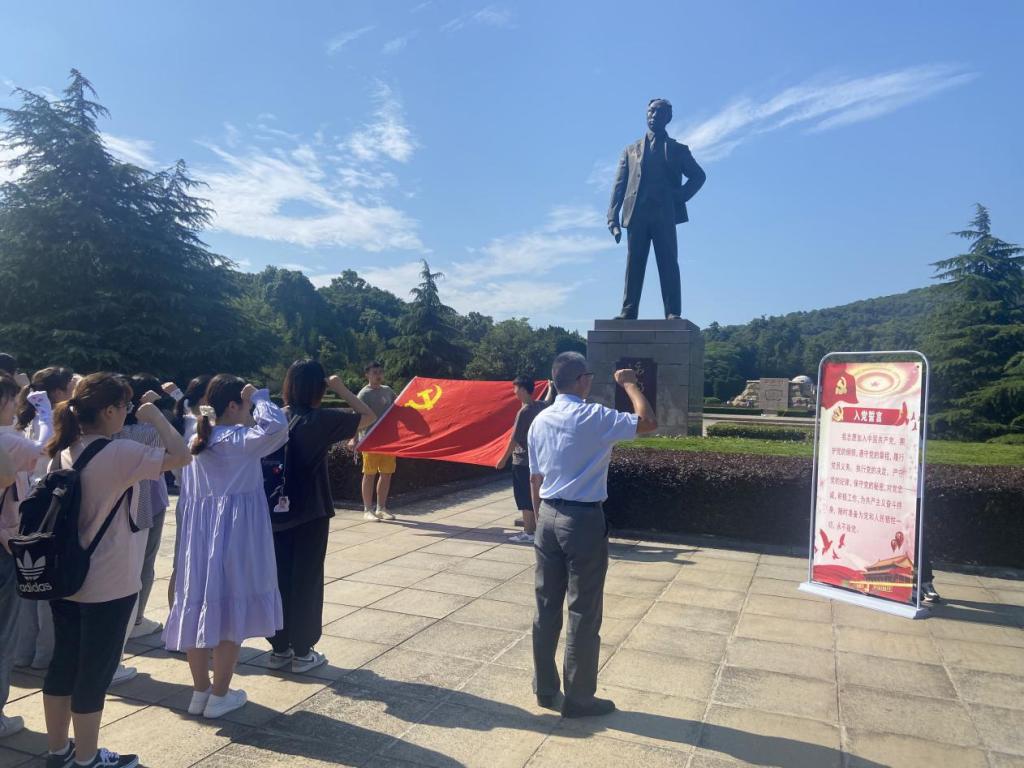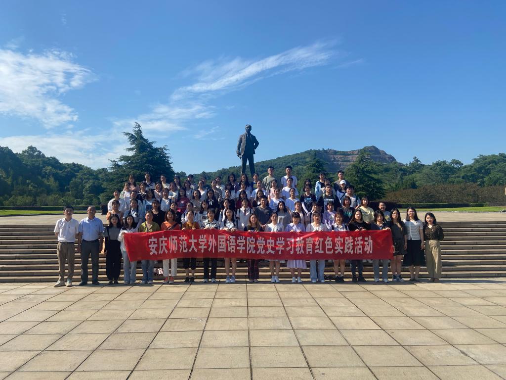 为庆祝中国共产党成立100周年,6月23日,外国语学院赴独秀园举行新党员入党宣誓暨重温入党誓词活动,学院党委书记李亦亮、全体学生党支部书记、全体学生党员共80余人参加活动。