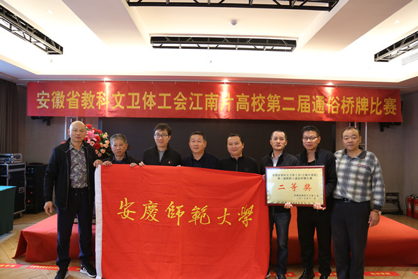 11月16日至17日,安徽省教科文卫体工会江南片高校第二届通俗桥牌比赛在铜陵学院举办,beat365官网选派代表队参加比赛,获得团体二等奖的好成绩。