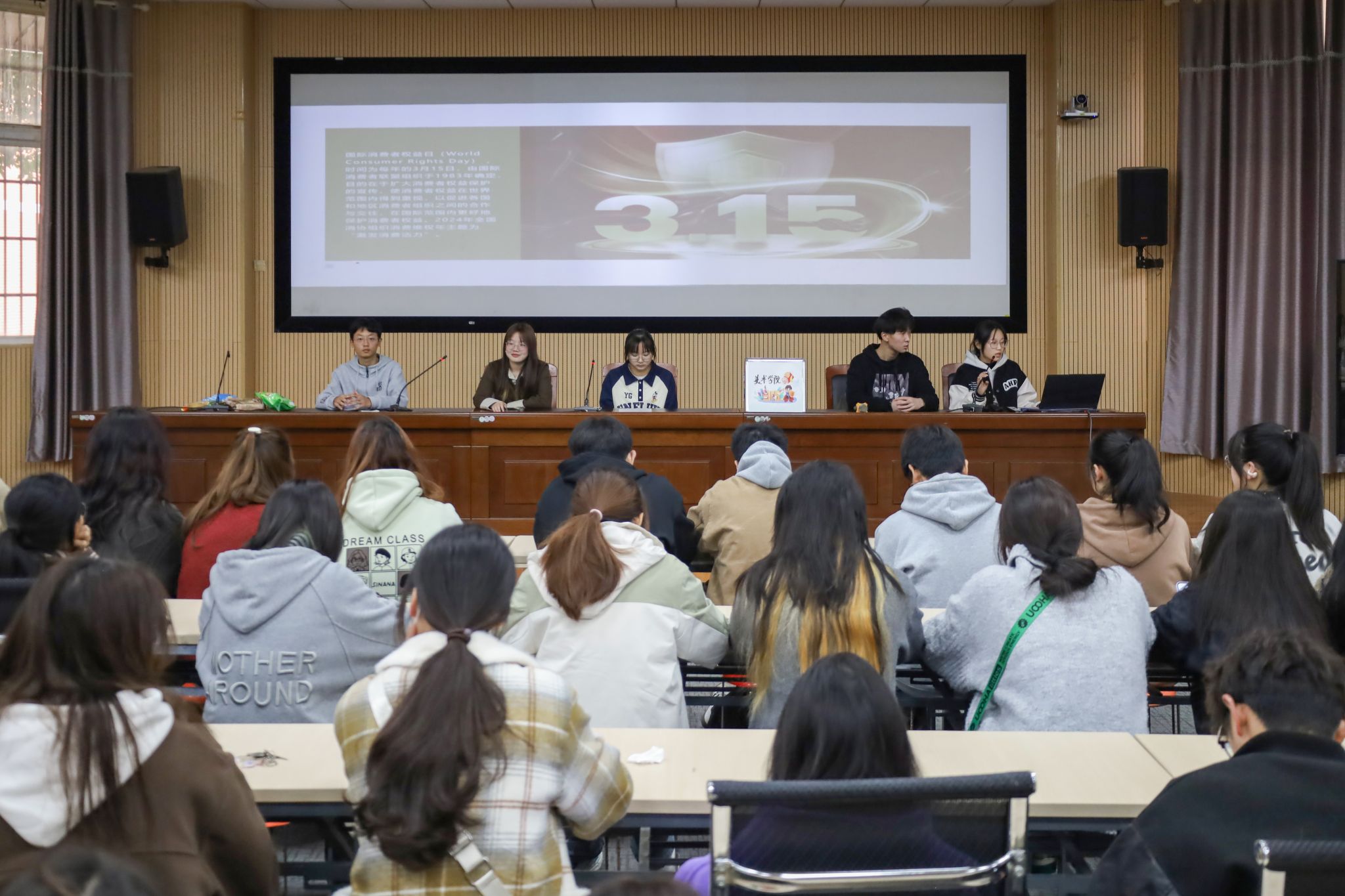 在“3.15”国际消费者权益日到来之际,为增强学生对消费者权益的认识, 3月13日,美术学院在学院学术报告厅开展消费者权益维护主题宣讲活动,学院150余名学子到场聆听。