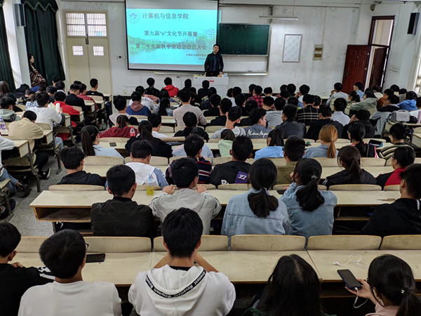 10月25日中午,计算机与信息学院在稼先南楼一阶教室召开了第九届“e”文化节开幕暨第三十九届秋季田径运动会动员大会。学院党委副书记江伟、团委负责老师、学生会骨干及全体运动员参加了此次动员会。