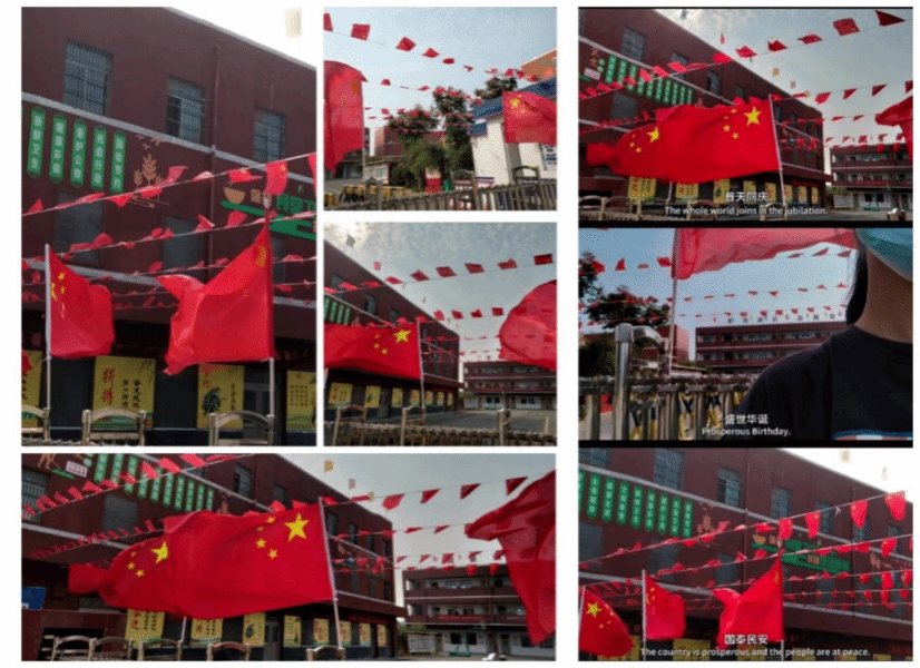 国庆期间,同学们还积极参与了拍摄家乡街道社区国庆装饰氛围照片的活动,并将这些照片制成拼图。通过摄影镜头,同学们展示了自己家乡的繁华景象和国庆节的欢庆氛围,让大家对各地的节日氛围有了直观的感受。
