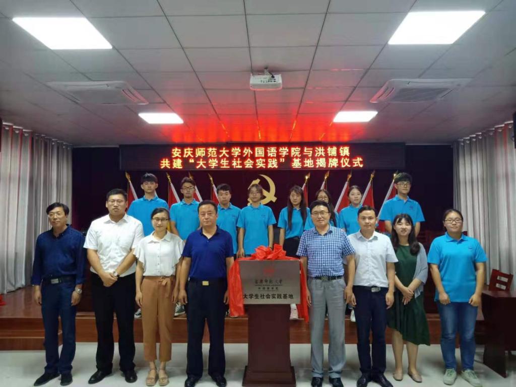 7月12日,外国语学院与洪铺镇政府联合共建大学生社会实践基地授牌仪式在安庆市怀宁县洪铺镇举行。beat365英国官网网站外国语学院党委书记郝涂根,党委副书记夏斐,洪铺镇党委书记严忠等出席授牌仪式。