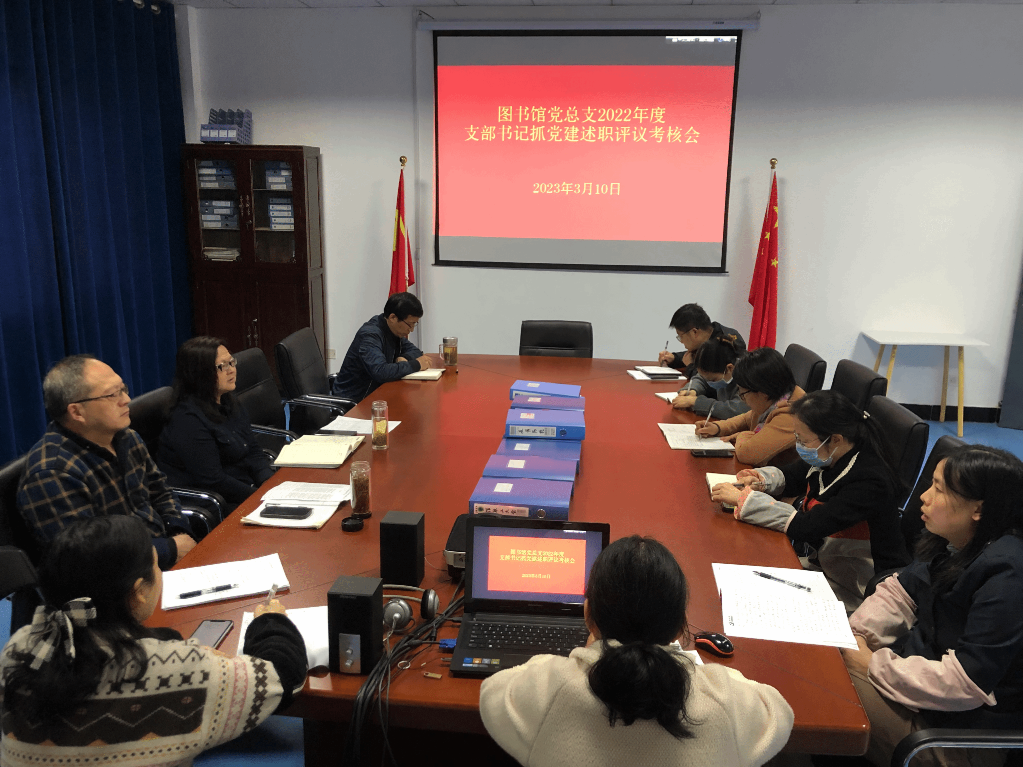 3月10日,图书馆党总支召开2022年度支部书记抓党建述职评议会。图书馆党总支委员、支部书记、支部委员、前任支部书记参加了会议。会议由图书馆党总支副书记、副馆长刘传迅主持。