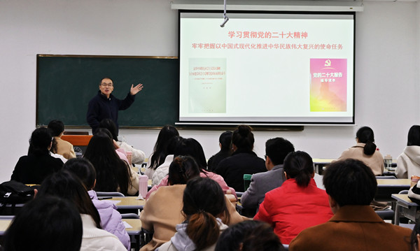 11月29日,马克思主义学院在Q楼301教室举办党的二十大精神宣讲会,学院金文斌教授作专题报告。学院全体研究生和校“青年新声”宣讲团成员参加。