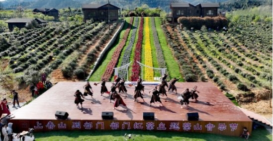 3月30日,2024祁门红茶主题茶山音乐节在安徽省黄山市祁门县祁门红茶集团平里生态茶园举办。音乐学院教师和59名学生承担了此次音乐节的整场演出,包括乐队演奏、舞蹈、器乐演奏、歌伴舞的统筹、策划。本次茶山音乐节以茶文化为主题,汇聚了众多茶艺专家,国际友人,共同感受茶山的美丽风光和红茶文化的魅力。