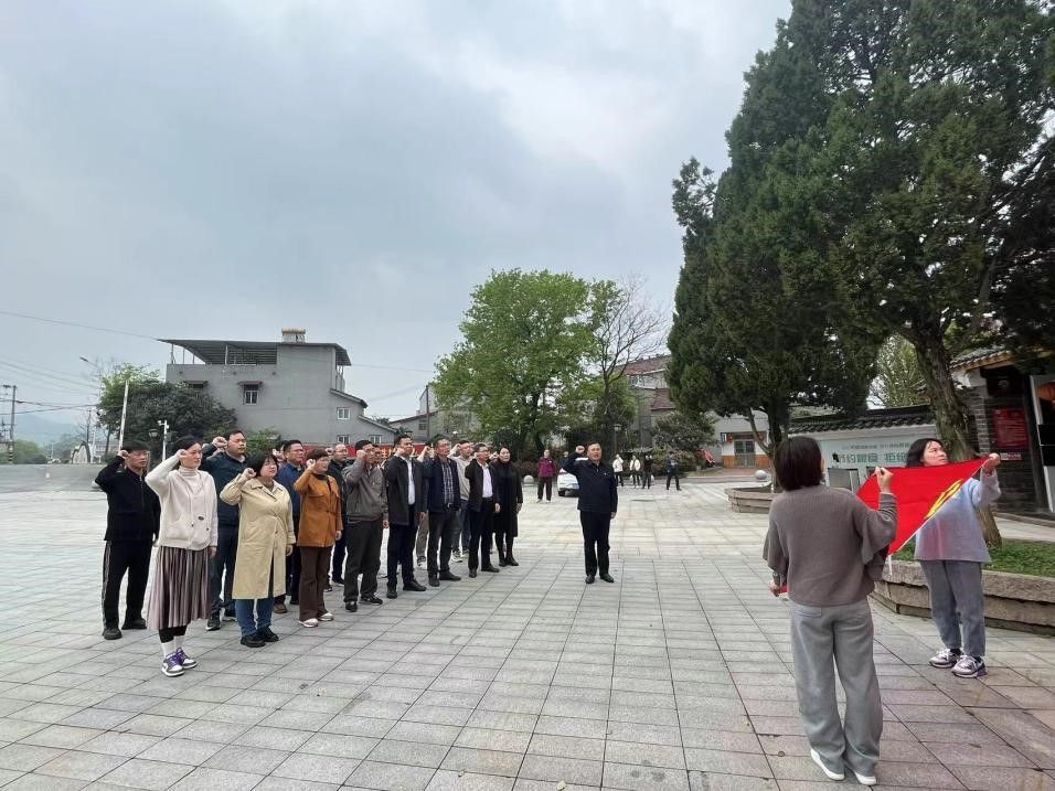 在邓稼先故居前,在校党委常委、组织部常务副部长计裕人带领下,全体党员面对鲜红的党旗,重温了入党誓词,用铿锵誓言宣示坚定不移的政治信念和矢志不渝为党奋斗的初心使命。