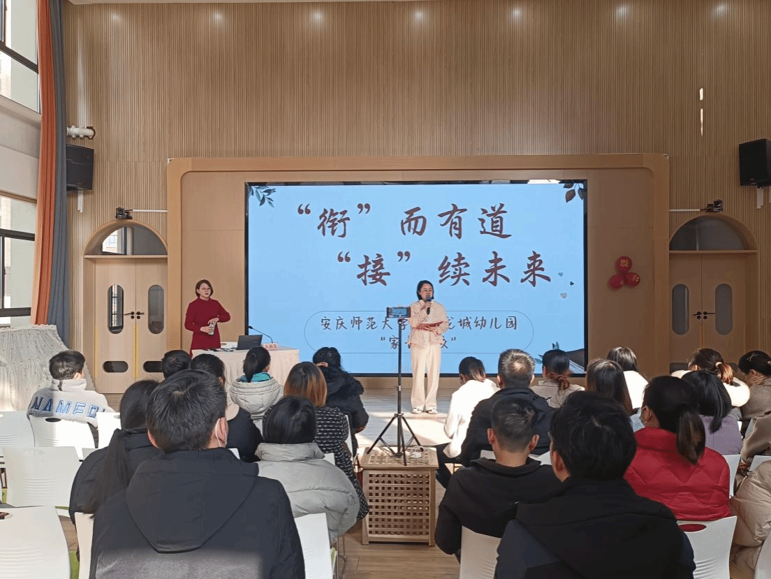 1月6日,附属龙城幼儿园搭建“家长学校”平台,邀请安庆市健康路小学港青路校区教导主任朱丽芳做主题为“花开有时,等一场爱的双向奔赴”幼小衔接教育专题讲座。本次讲座采用线上线下相结合的方式同步进行。