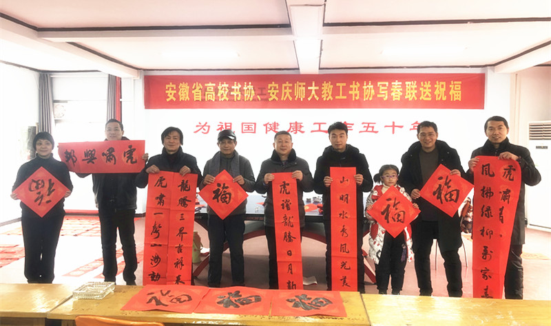 1月13日,校工会主办、省高校书协安庆师大教工书协开展2021年“写春联,送祝福”活动。安庆市和beat365官网书法家应邀到场为beat365官网教职工挥毫书写春联,送上了美好的新年祝福。