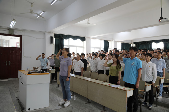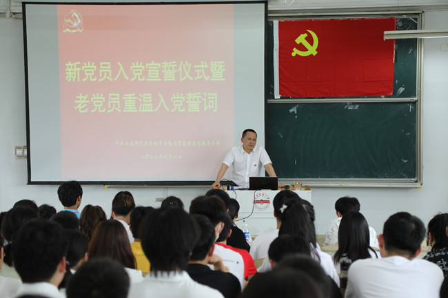 6月1日,电子工程与智能制造学院举行新党员入党宣誓暨老党员重温入党誓词仪式。该院党委书记夏云高出席会议。全体学生党支部书记和全体新党员参加活动。