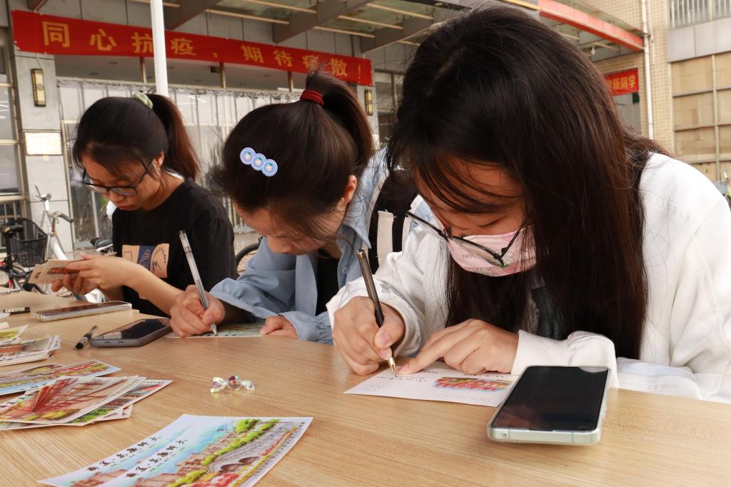 “这一套明信片是由我们的协会创始人在2015年进行创作印制的,至今已经沿用了八年。今年,我们共准备了1000张明信片供学生书写。”活动负责人、小学教育专业2021级(3)班的学生付心语介绍,“希望通过这些明信片让学长、学姐们在临别时带走师大校园的美景,带着师大回忆走向‘远方’。”她表示,“这些明信片并非‘写完即无’,协会还将在未来的毕业典礼上将学生们的手写明信片悉数赠与毕业生。”
