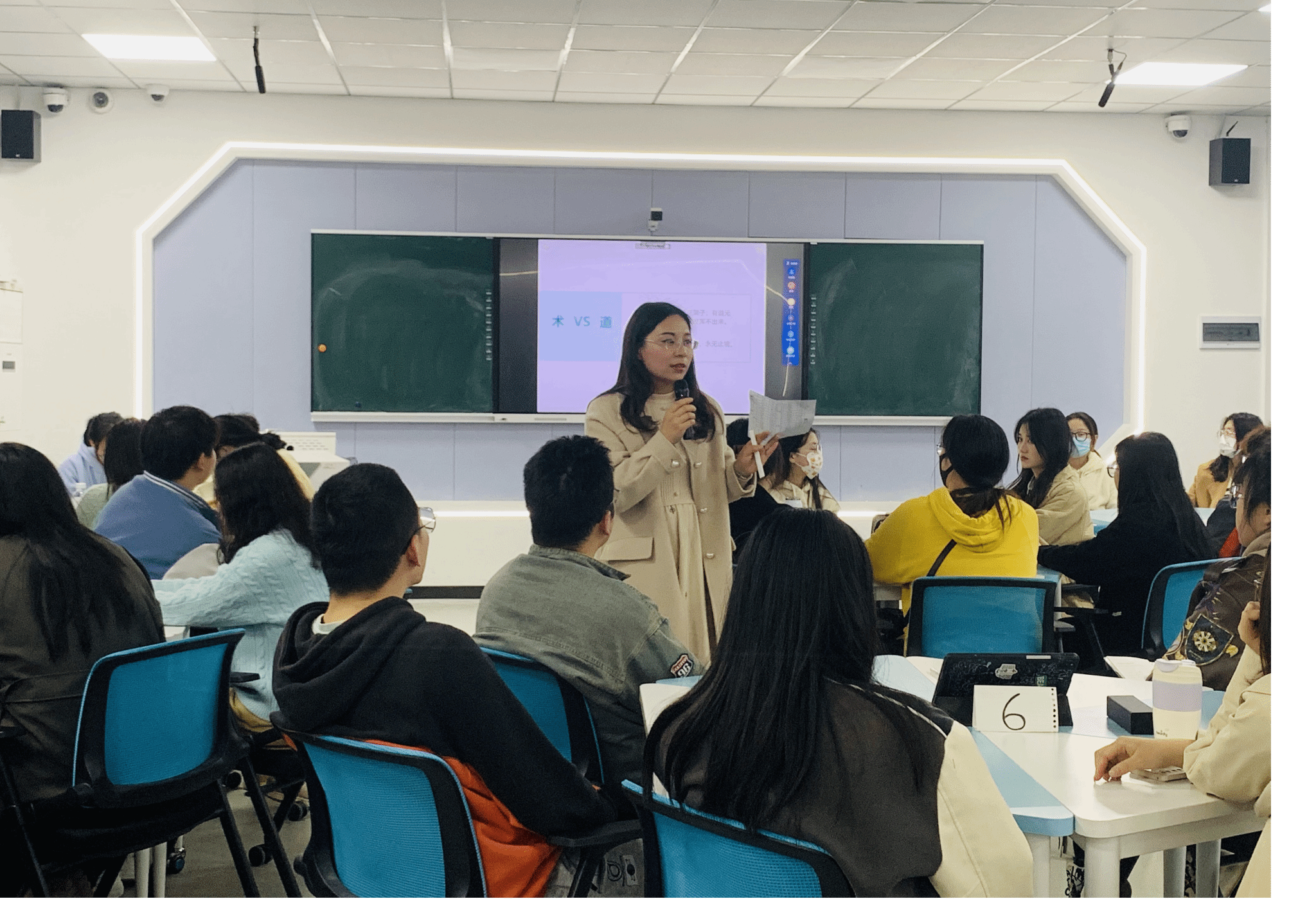示范课上,孟莉主要讲授了《市场调研与项目选择》教学章节中的市场营销4P理论。孟莉将星巴克、鸿星尔克等贴近生活的商业案例融入教学内容,课堂教学气氛活跃,学生踊跃互动,教育教学效果优良。