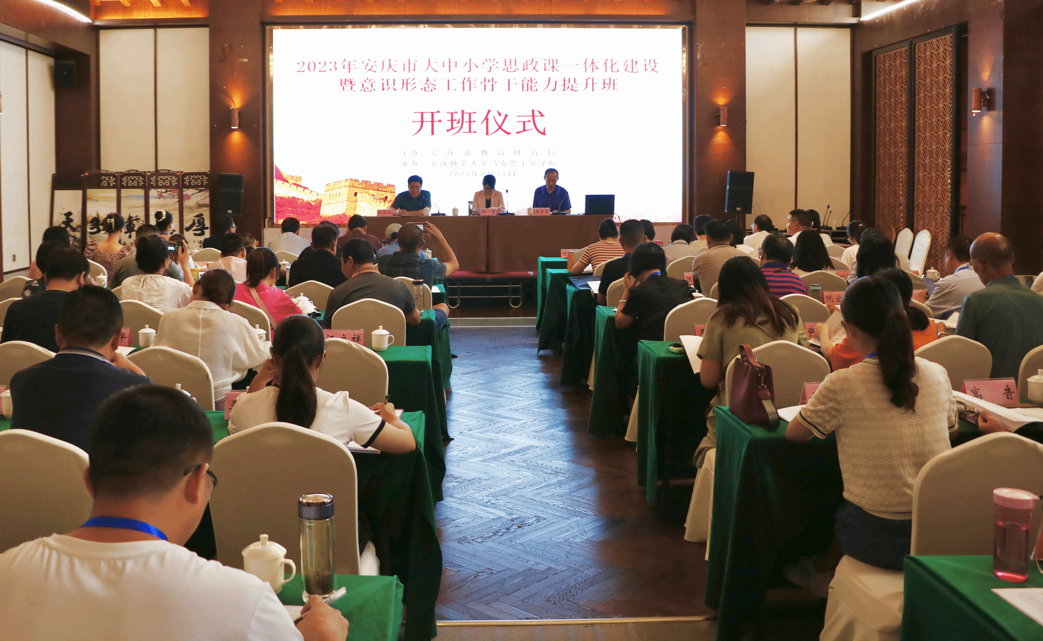 8月21日至26日,由安庆市教育体育局主办、beat365官网马克思主义学院承办的安庆市大中小学思政课一体化建设暨意识形态工作骨干能力提升班顺利开班,校党委常委、宣传部部长、马克思主义学院党委书记陈秀教授,安庆市教育体育局四级调研员吴宗亚出席开班式,来自安庆市的大中小学思政课教师共80人参与此次培训学习。开班式由马克思主义学院副院长张俊生主持。