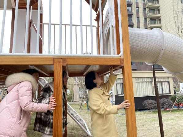 硬件设施大排查,防患未然了于心。幼儿园同时也对硬件设施进行了检查,应急照明、指示灯、灭火器、监控设备配备完好,不存在电线老化情况;大型玩具无螺丝松动、设施老化等安全隐患,做到防患于未然。