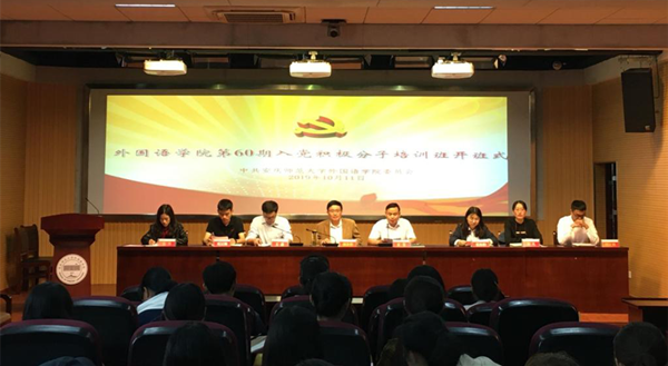 10月11日,外国语学院党委举行第60期入党积极分子培训班开班典礼。党委书记郝涂根、副书记夏斐、各专业学生党支部书记出席开班典礼,第60期入党积极分子培训班全体学员参加开班典礼。