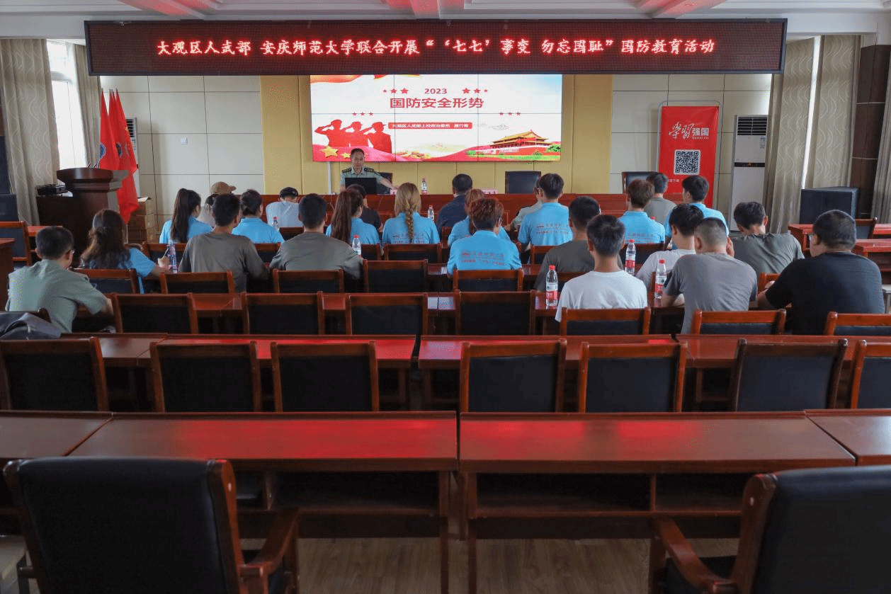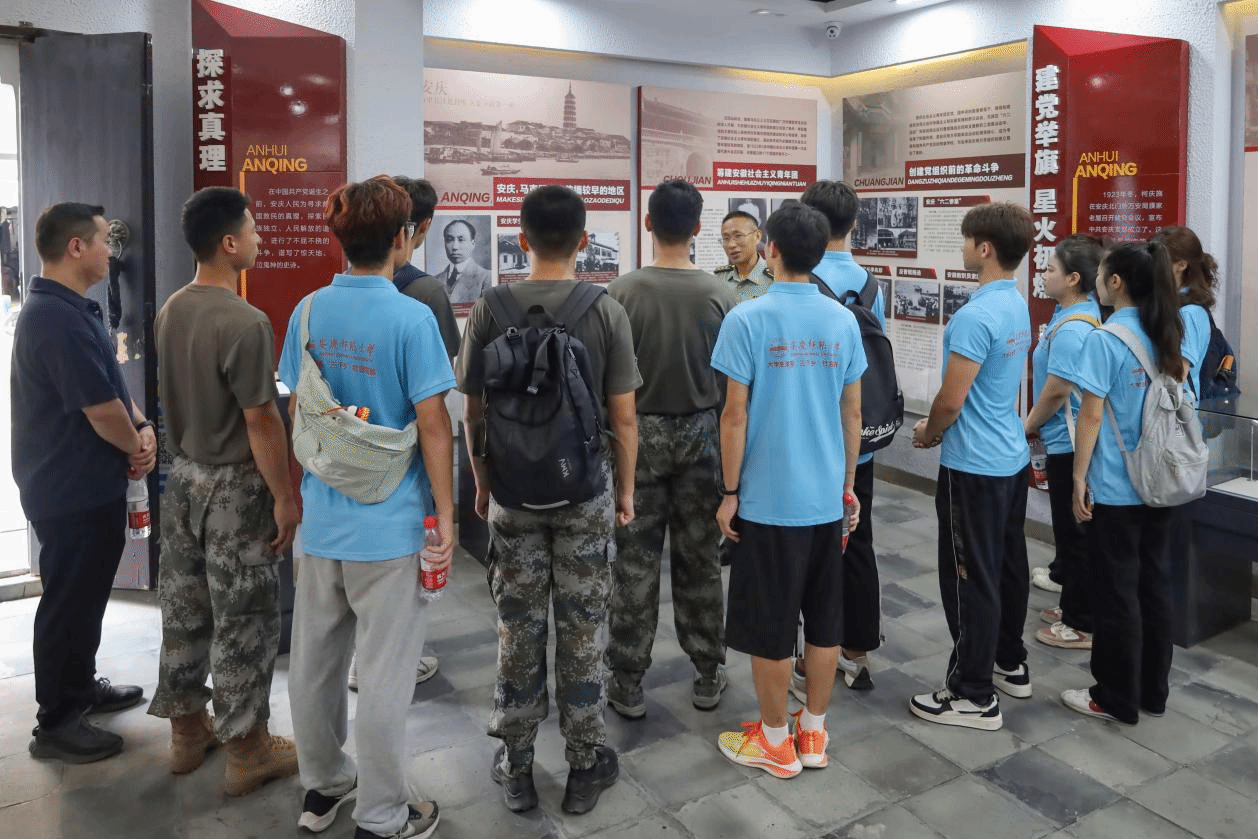 此次活动分为参观中共安庆建党会议旧址陈列馆、参与国防教育讲座以及退役复学学生分享军旅经历三个环节,大观区人武部上校部长陈洪涛、上校政委聂竹青出席指导活动。
