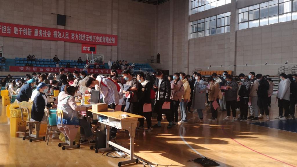 学校临时接种点分别设置在龙山校区体育馆和菱湖校区图书馆,师生们在志愿者的引导下,经过信息登记、接种、留观30分钟等环节后,确认无异常反应后离开。接种现场井然有序,工作人员热情服务,严格按操作规范进行疫苗接种。
