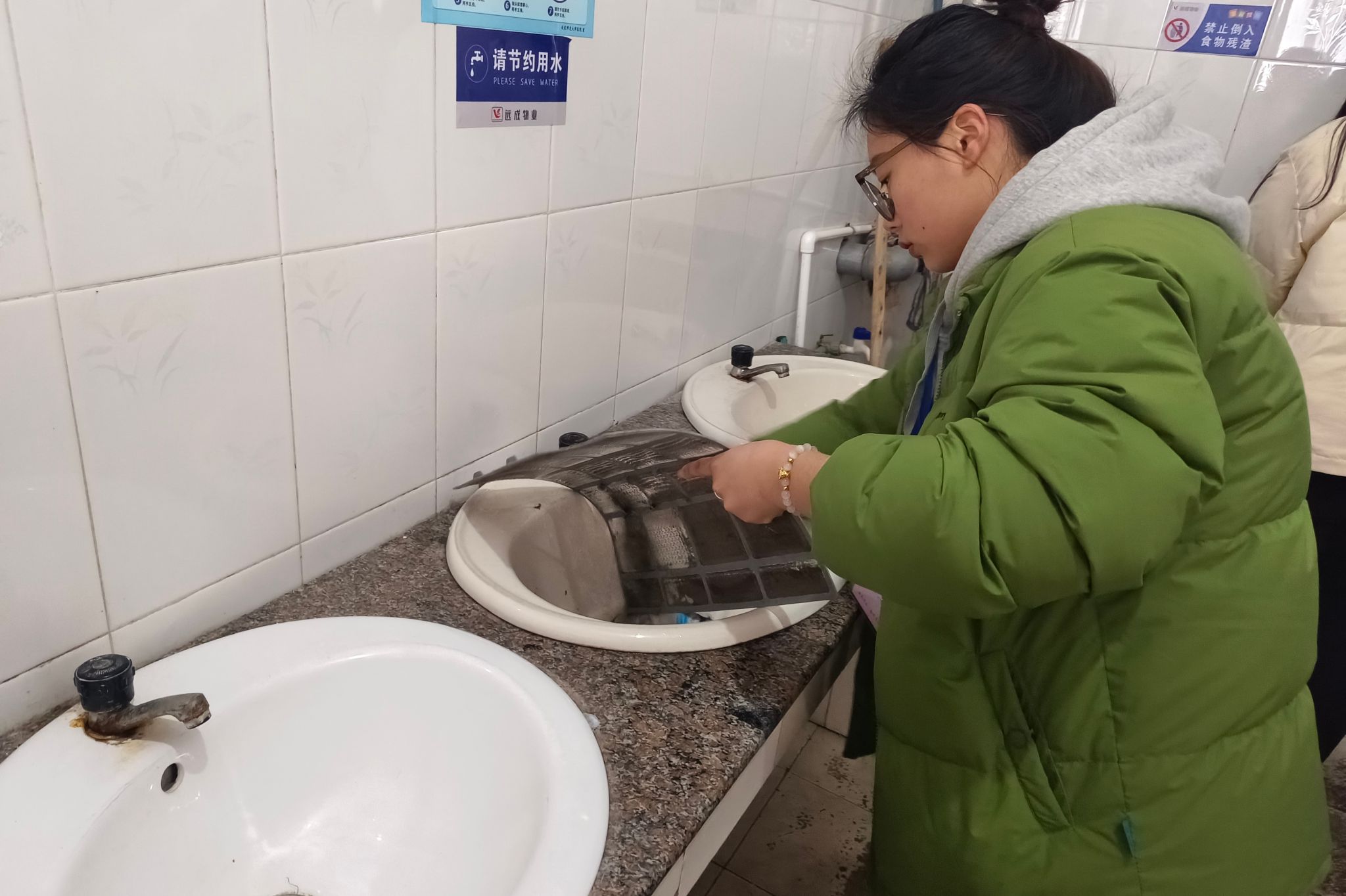 清洗空调、清扫地面、处理垃圾、擦拭玻璃……学生们在负责人员的统一安排下,按照分工,组成小组,在宿管阿姨的带领下进入宿舍,对宿舍楼的空调、玻璃、墙壁以及地面进行了清理,并在活动结束后主动清洗、整理了使用的抹布、拖把等物品。
