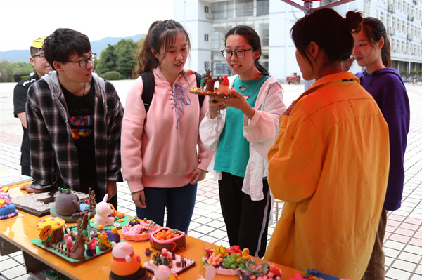 “好可爱啊!”展览现场不断发出这样的感叹,五颜六色的小物件摆放在桌子上吸引了不少同学围观。地理科学专业2018(3)班的刘娇乔买了件蜘蛛侠的泥塑,“这些小玩意都很精致,因为我自己比较喜欢漫威系列的周边,所以买了这个雕塑。”